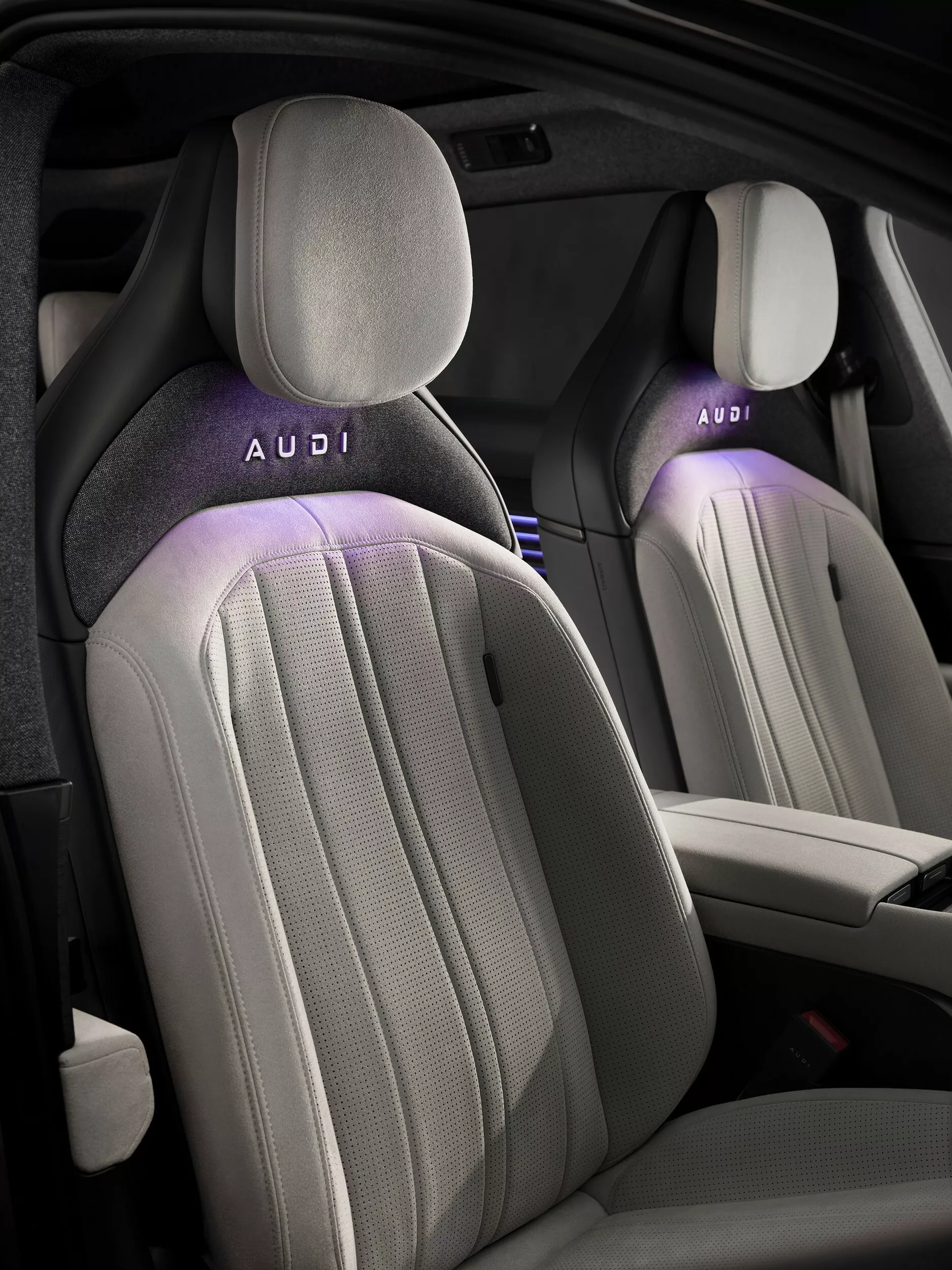 في خطوة جريئة، قررت أودي أن تُقدّم E5 في الصين بهوية مختلفة — فبدلًا من شعار الحلقات الأربع الشهير، تظهر على الشبك الأمامي كلمة AUDI فقط بخط حديث، تعبيرًا عن توجه جديد يستهدف جيل الشباب وعشاق التقنية.