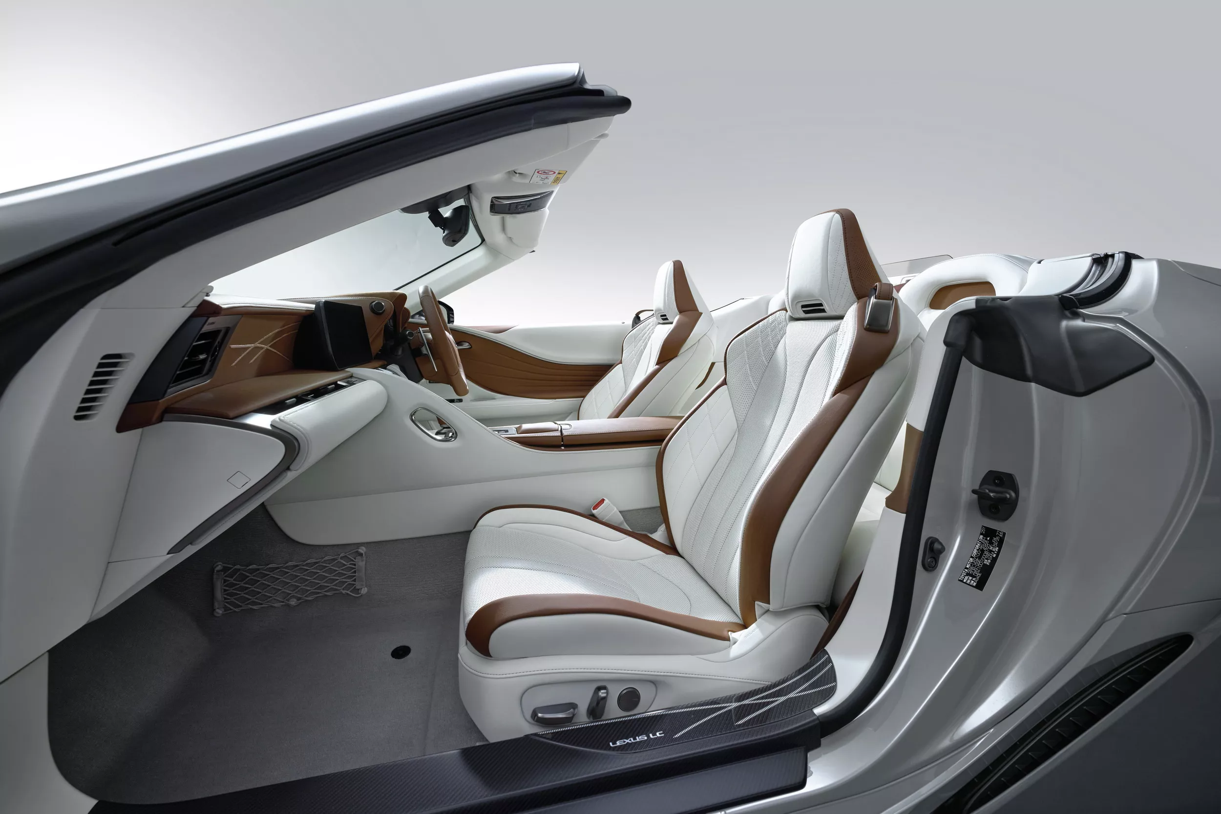 من الداخل، تأتي الكوبيه بمزيج من اللونين الأسود والأبيض، بينما تبرز نسخة الكشف بمقاعد جلدية بلون “تان” الفاخر مع الأبيض. وتضم المقصورة: