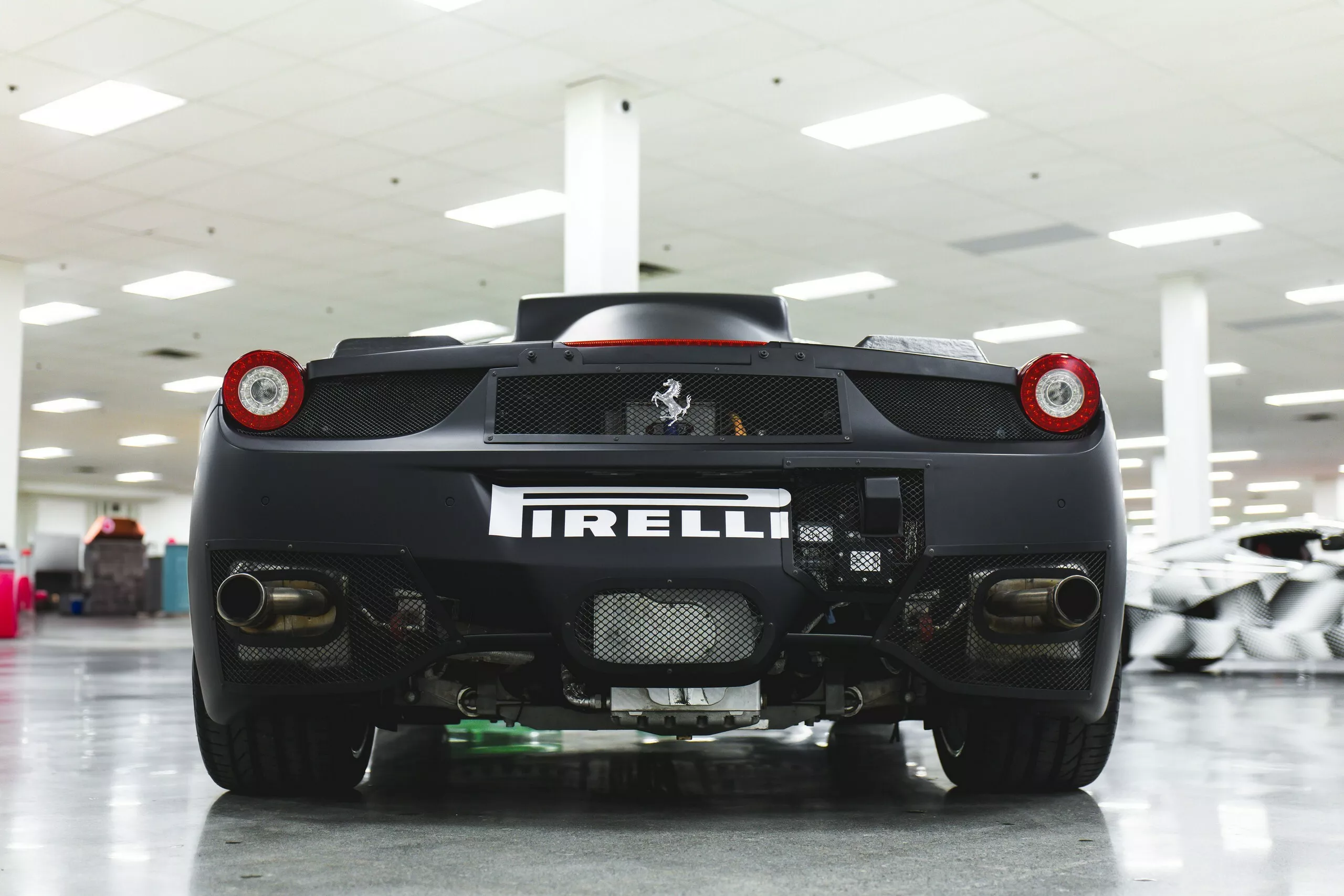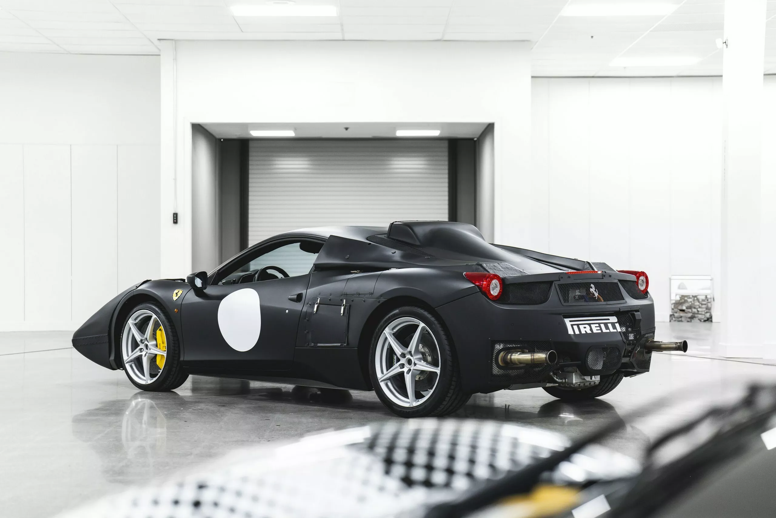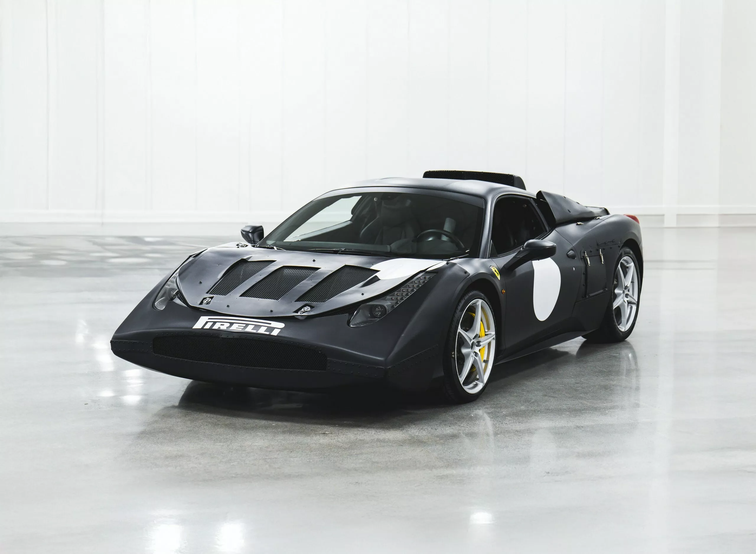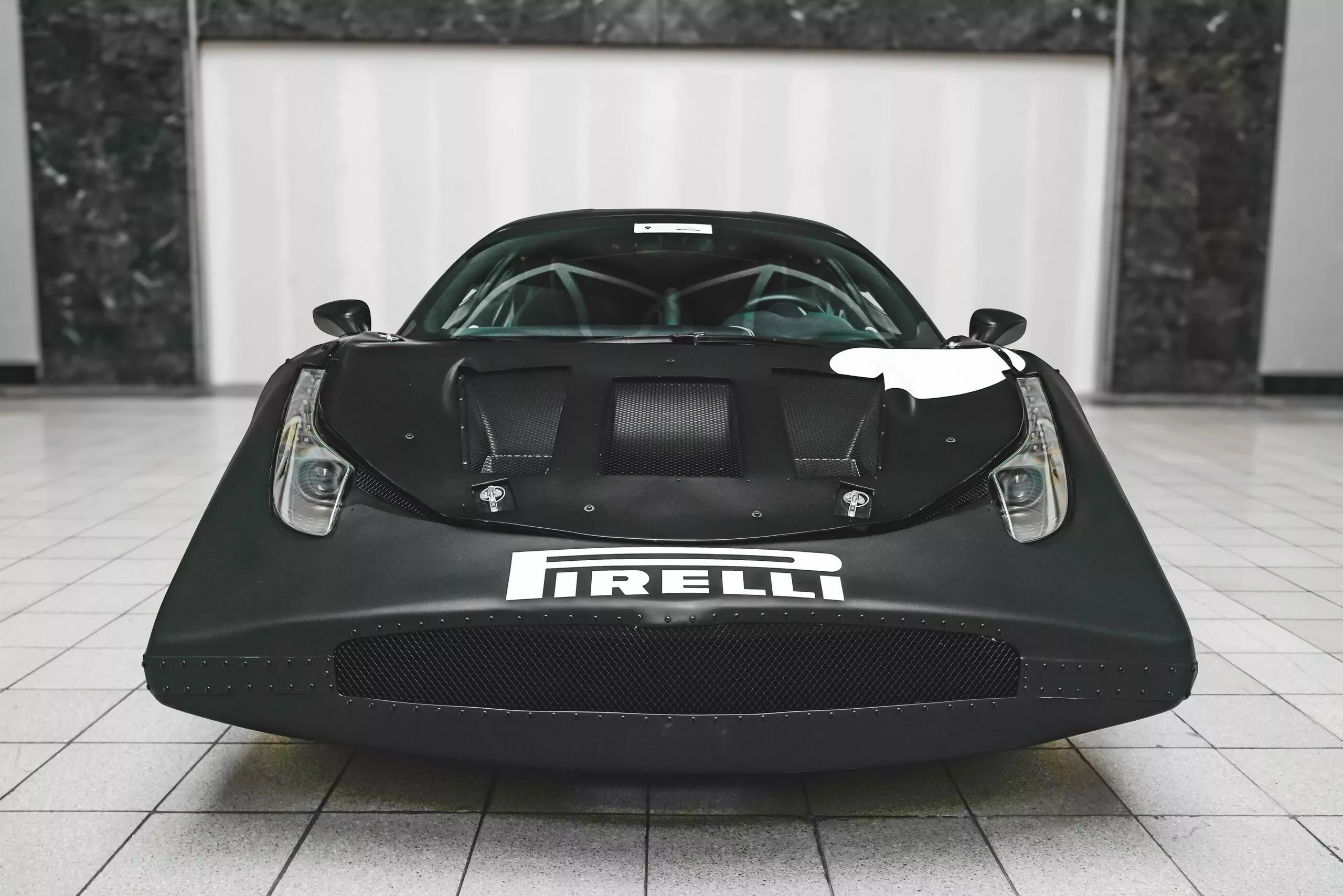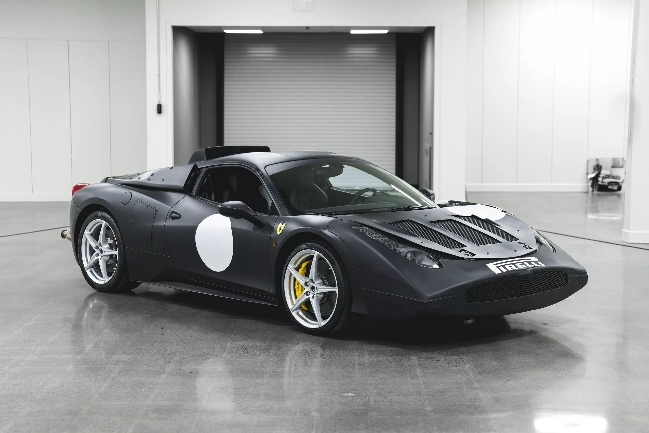 من الخارج، يبدو هذا البروتوتايب أشبه بـ “فرانكشتاين” ميكانيكي، حيث تم استبدال معظم ألواح الهيكل الأصلية بقطع معدّلة لأغراض الاختبارات، مع مقدمة وغطاء محرك مختلفين تمامًا، وخلفية تحافظ فقط على المصابيح الخلفية وفتحات التهوية من 458. أما المقصورة الداخلية، فهي قريبة جدًا من تصميم 458 إيطاليا، مع إضافة بطارية إضافية بجهد 12 فولت في موضع قدم الراكب.