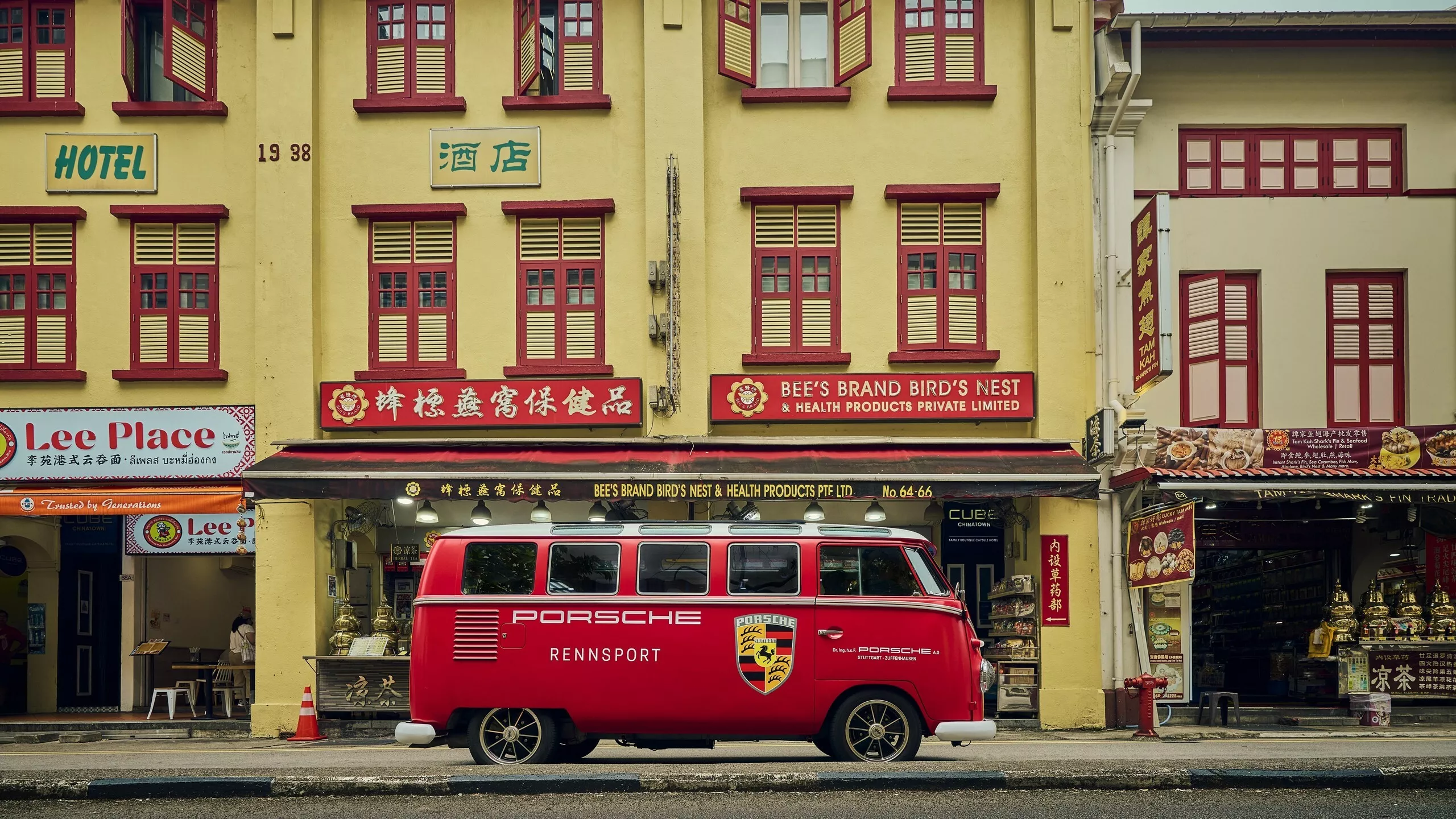 كما تزامن الكشف عن التصاميم النهائية مع سباق الفورمولا 1 في سنغافورة، حيث قدّمت بورشه أيضًا سيارتها الكلاسيكية Renndienst Van التي جابت شوارع المدينة لتوزيع مجلات مجانية تسلّط الضوء على تاريخ بورشه في عالم السباقات.