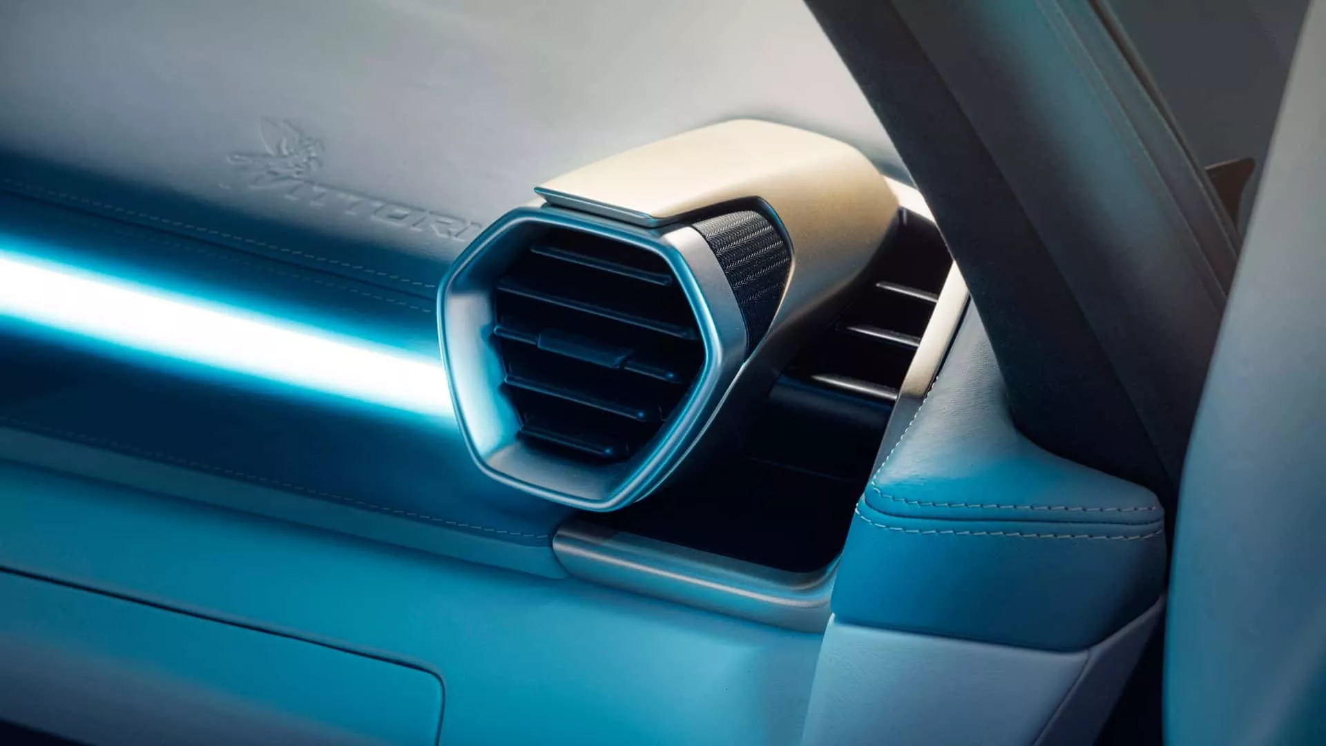 أما المقصورة الداخلية، فهي مزيج بين الفخامة المستقبلية والهندسة الدقيقة. المقود متعدد الأزرار والأوضاع، العدادات شبه رقمية، شاشة وسطية بوضع عمودي تشبه تلك في سيارات السباق، وإضاءة محيطية متناسقة مع الجلد الفاخر بثلاثة ألوان: الأبيض، الأسود، والأزرق — كل تفصيل يعكس التوازن بين التقنية والذوق الإيطالي الراقي.