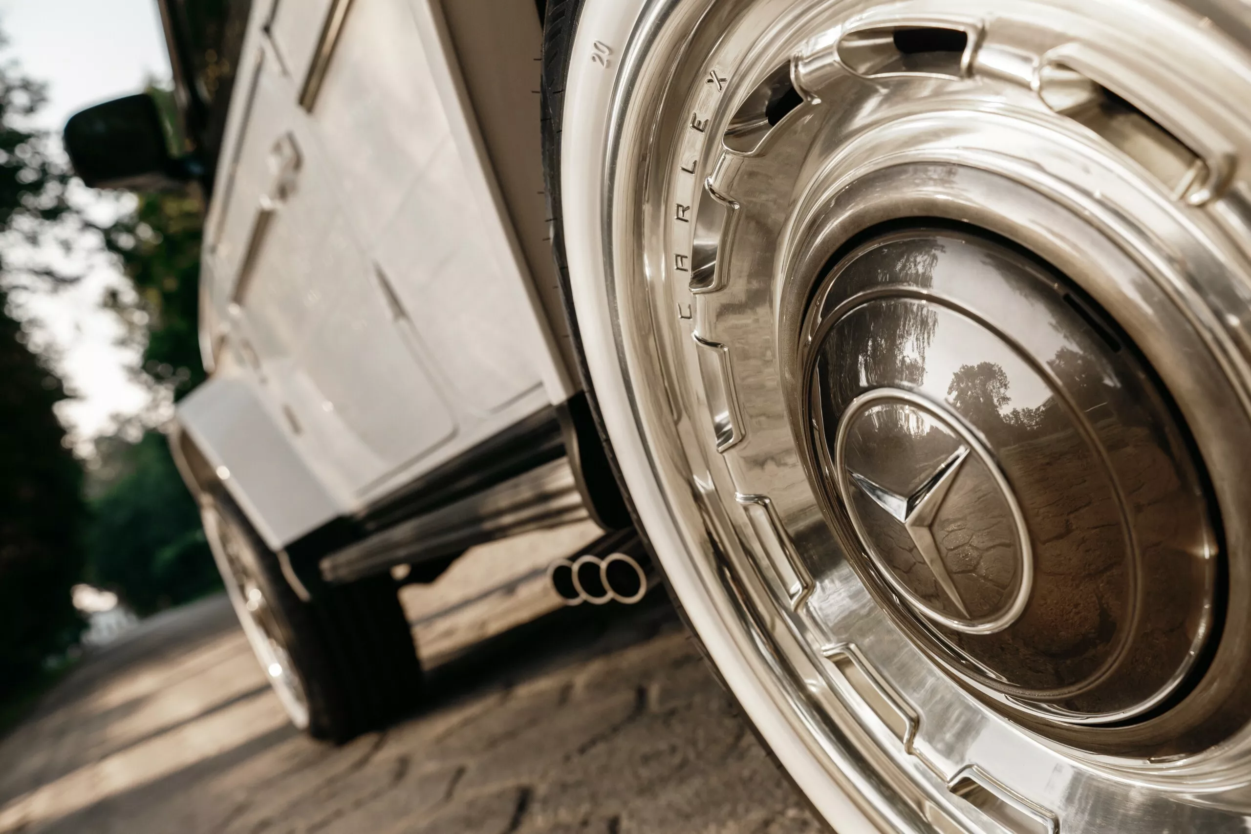 تُعيد Carlex تعريف مفهوم “الريترو مودرن” عبر إعادة الزمن إلى الوراء بتصميم مستوحى من الكلاسيكيات مع خطوط حديثة. الهيكل الخارجي مزوّد بحزمة widebody تمنحها حضورًا قويًا على الطريق، مع أقواس عجلات عريضة، وإطارات بيضاء كلاسيكية، وجنوط ألومنيوم مستوحاة من تصميمات السبعينيات.