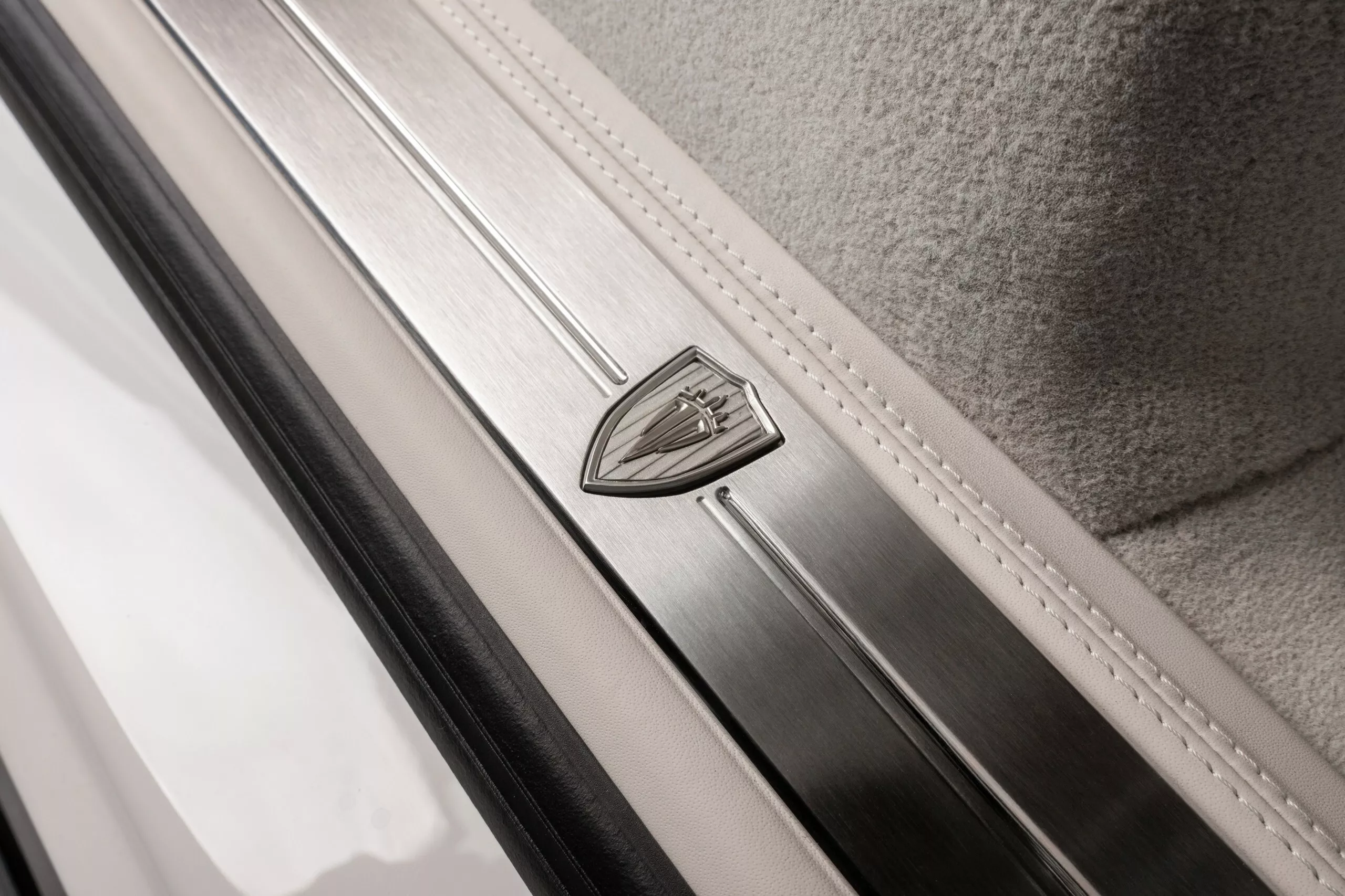 كما تمت إضافة لمسات من الجلد الأبيض والبني الفاتح إلى جانب أسطح مغطاة بالـ Alcantara على السقف والأعمدة الداخلية، مما يمنح المقصورة مزيجًا متناغمًا بين الأناقة الكلاسيكية والفخامة المعاصرة.