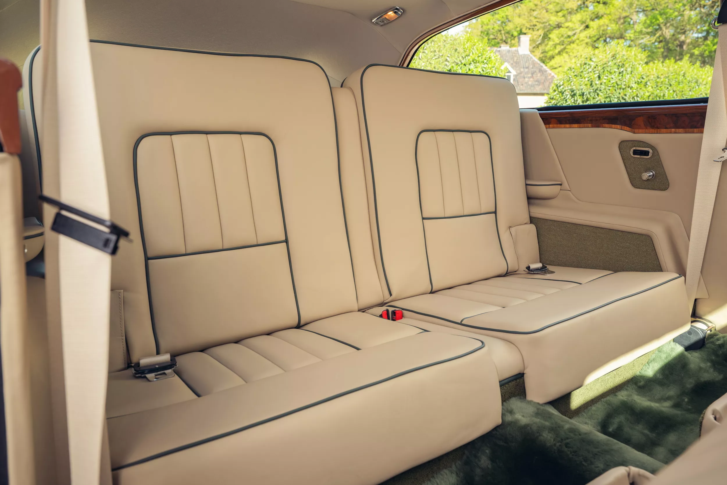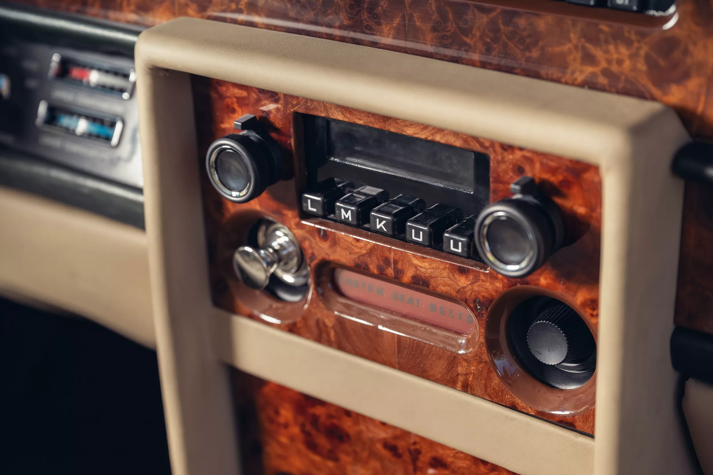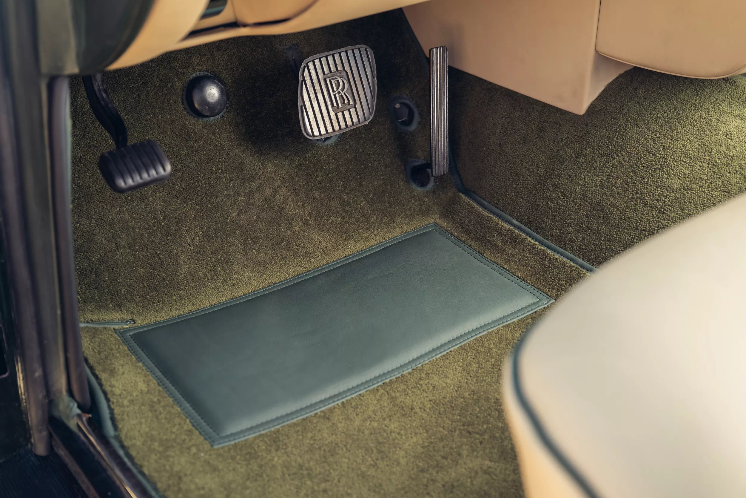 في الداخل، تم ترميم الخشب الأصلي بلوحة القيادة الفاخرة، مع جلد بيج فاخر ولمسات خضراء وزرقة ناعمة. تشمل الإضافات الفريدة عداد سباقات Rally Meter من نوع Brantz مخفي خلف لوحة خشبية، وجيب خرائط، ومصباح قراءة، ومجموعة حقائب مطابقة للتصميم الداخلي. كما أضيفت مرايا تجميل على الباب الخلفي ومجموعة تنظيف للدراجات — لمسات تعكس الدقة البريطانية في أبهى صورها.