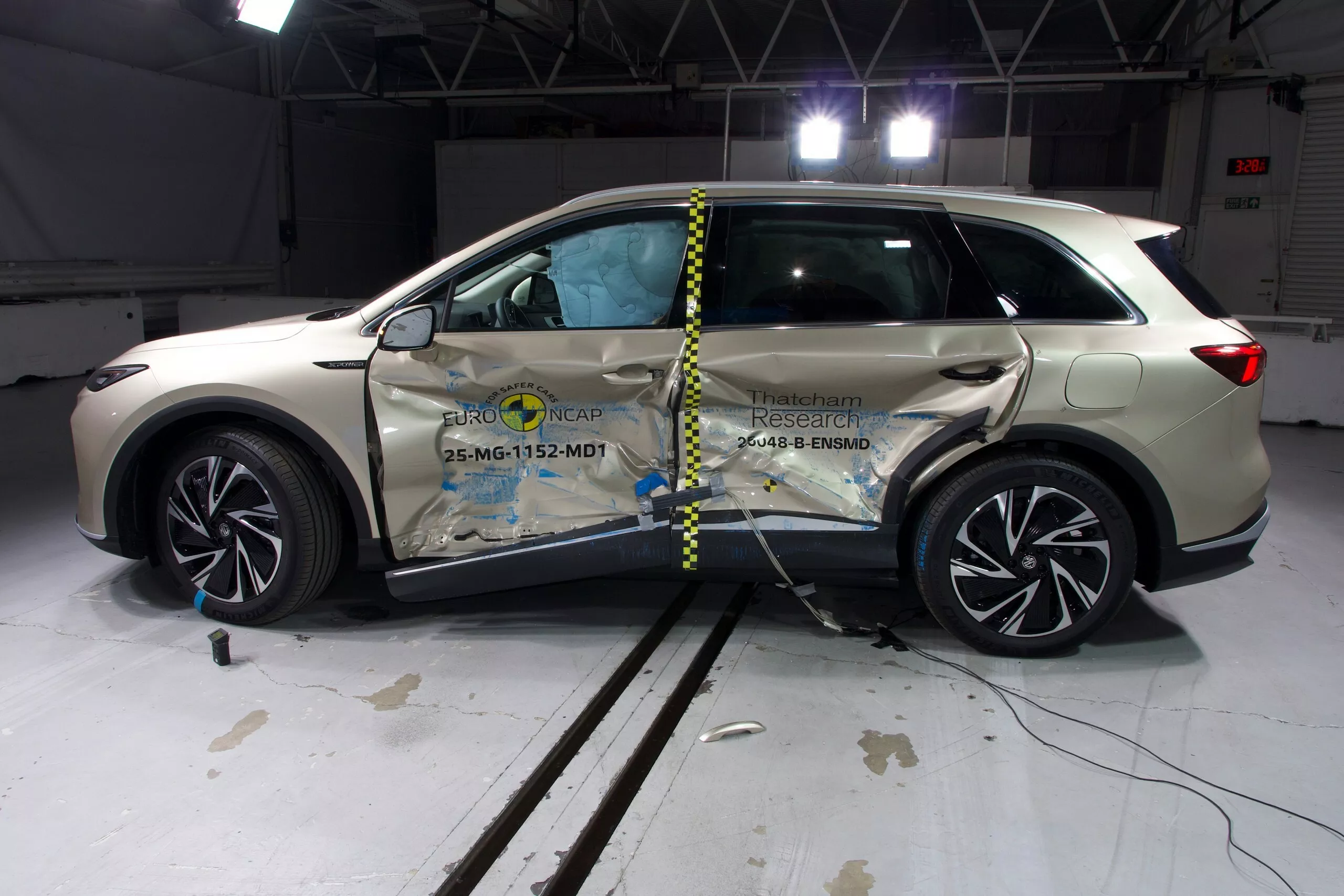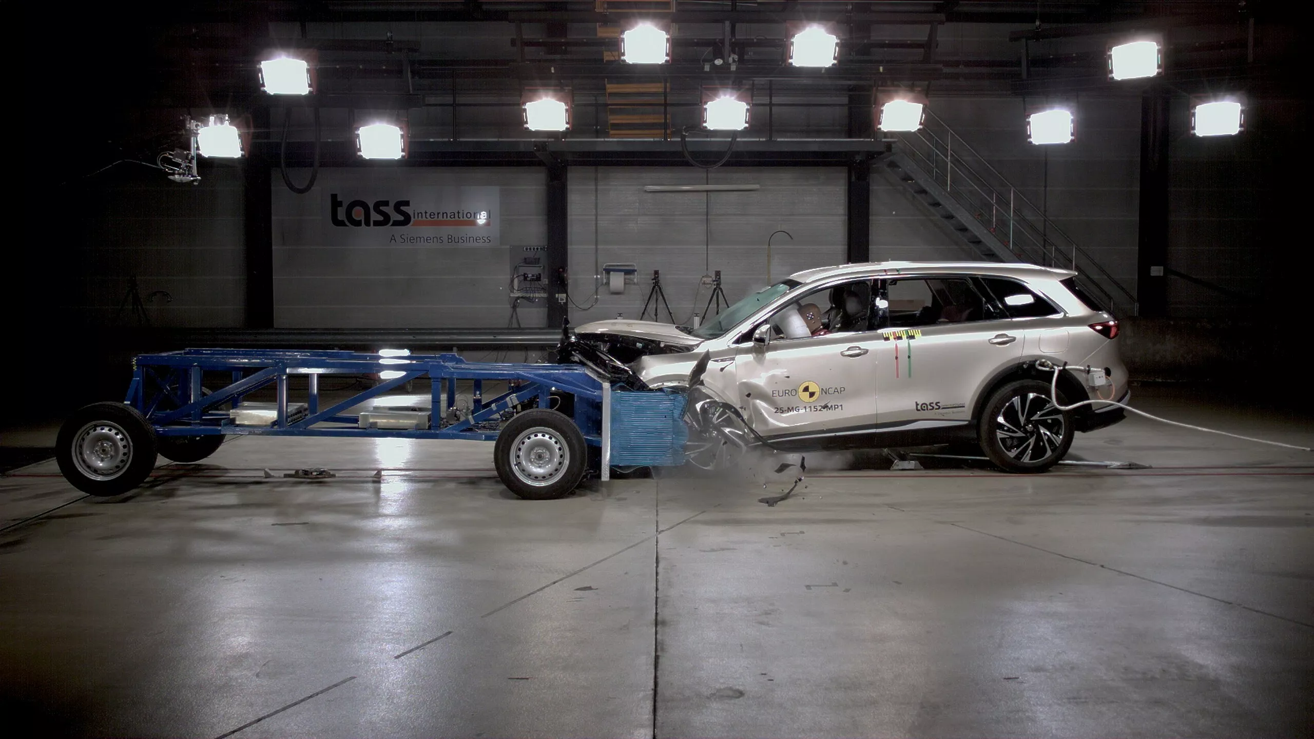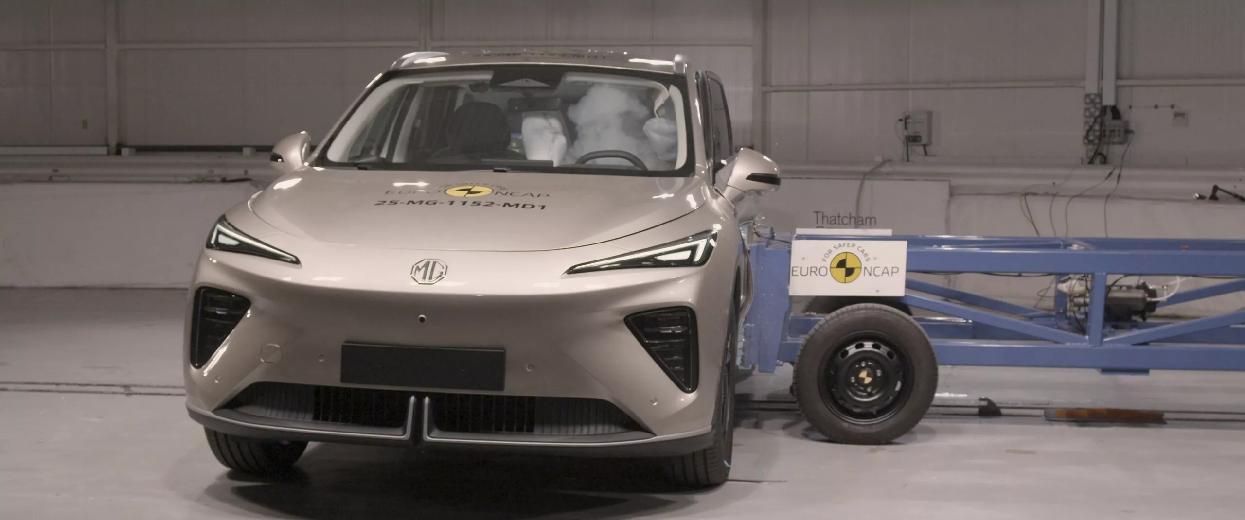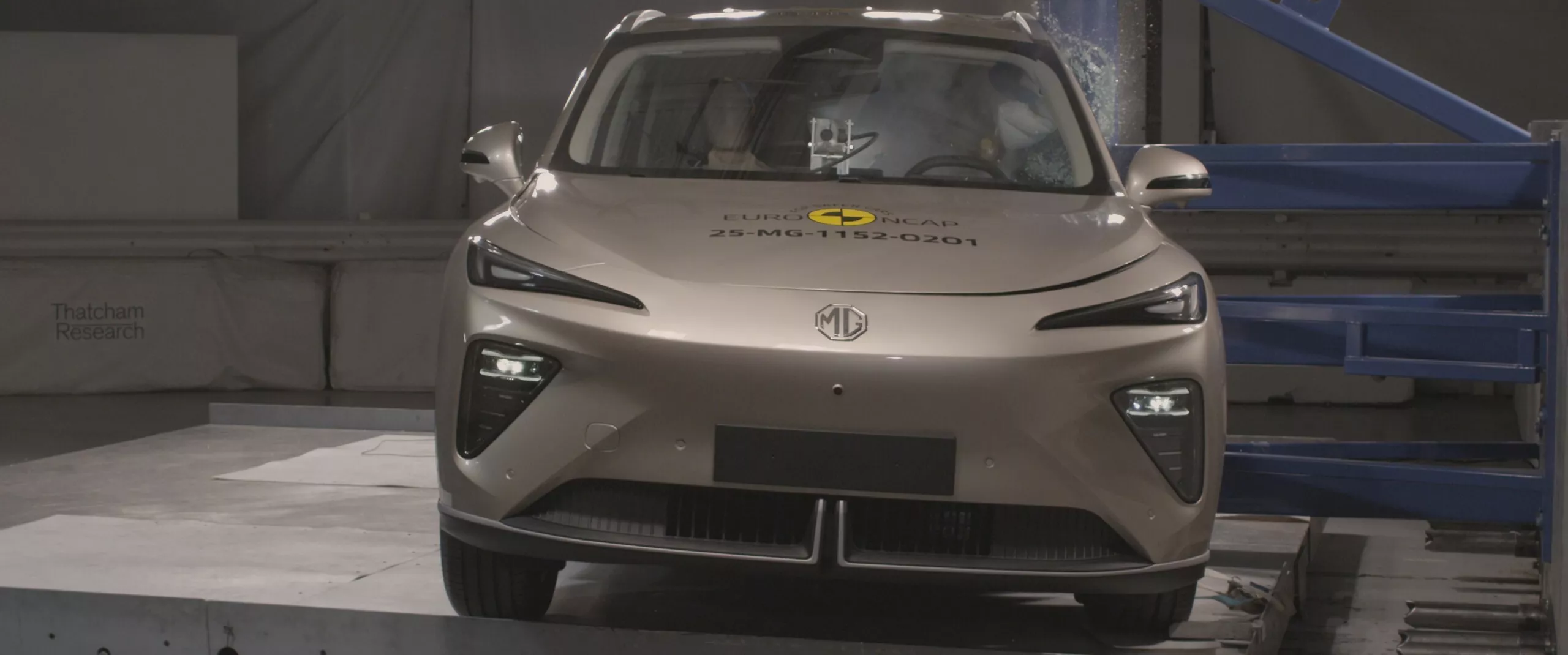 تسرّبٌ غير مقصود يكشف MG S6 EV الجديدة عبر اختبارات Euro NCAP. ظهرت الصور الأولى للـSUV الكهربائية متوسطة الحجم أثناء اختبارات التصادم، مانحةً نظرة مبكرة على التصميم الحاد والخطوط الديناميكية التي تستلهم بعض ملامح MG S5 مع شبك سفلي صغير في قاع الصدام، مصابيح نهارية LED، ومصابيح رئيسية منفصلة داخل عناصر مثلثية. الخلفية أنيقة مع شريط ضوئي ممتد وتواقيع إضاءة معقّدة ولمسات سوداء وناشر هوائي حاد يمنح السيارة حضورًا رياضيًا.