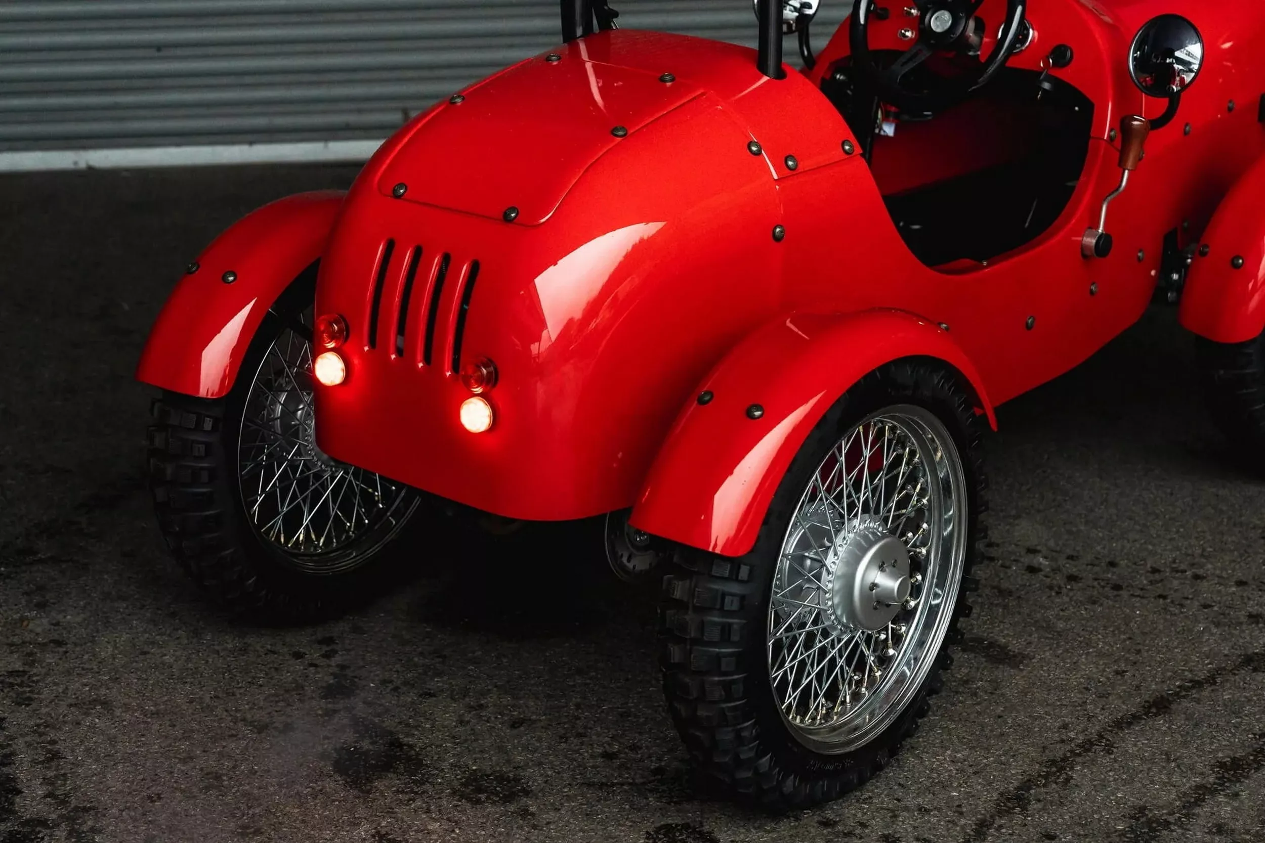 في الداخل، لا توجد شاشات أو أنظمة متطورة، بل مجموعة محدودة من المفاتيح للتحكم بالإضاءة LED، مع عدادات بسيطة خلف المقود ثلاثي الأذرع. المقعد مصمم ليستوعب سائقاً بالغاً، بينما تم وضع عصا ناقل الحركة خارج الهيكل بطريقة عملية.