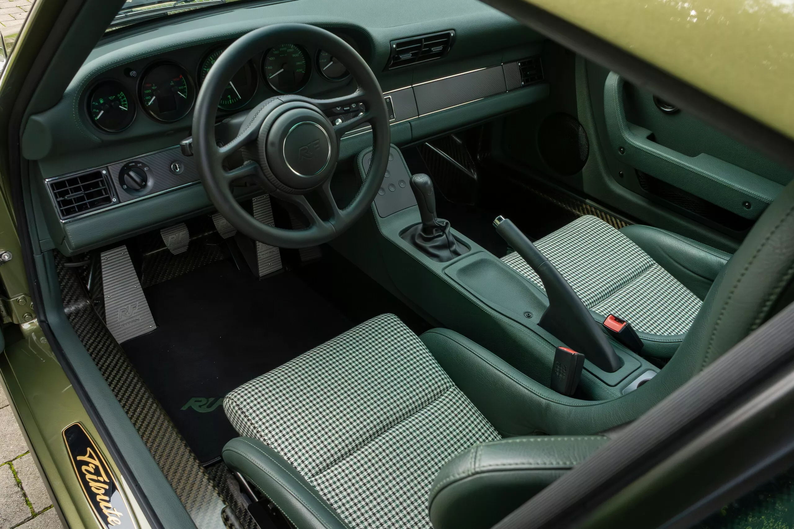 على عكس ما قد يظنه البعض بأنها مجرد بورشه معدلة، فإن Ruf Rodeo مبنية على هيكل أحادي من ألياف الكربون (Carbon Monocoque) بالكامل، ما يجعلها السيارة الوحيدة من نوعها الجاهزة للأوف-رود بهذه البنية. النسخة الأولى جاءت بلون Jordan Black مع جنوط بيضاء بمثبت مركزي (Centerlock) تمنحها مظهرًا هجوميًا لا يُخطئه النظر.