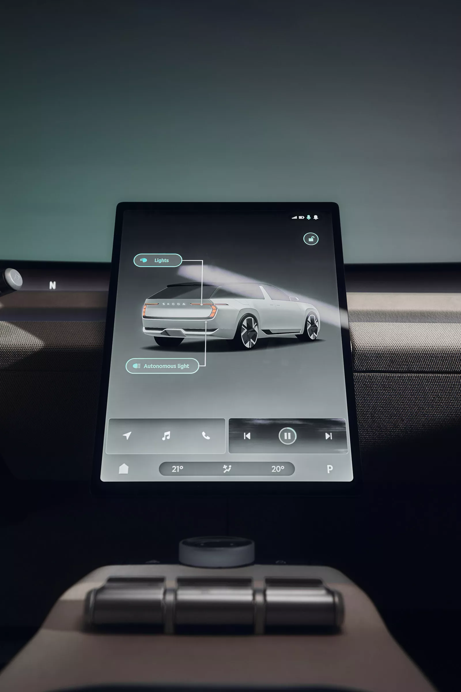• شاشة وسطية تعمل باللمس بتصميم عمودي عائم فوق الكونسول.