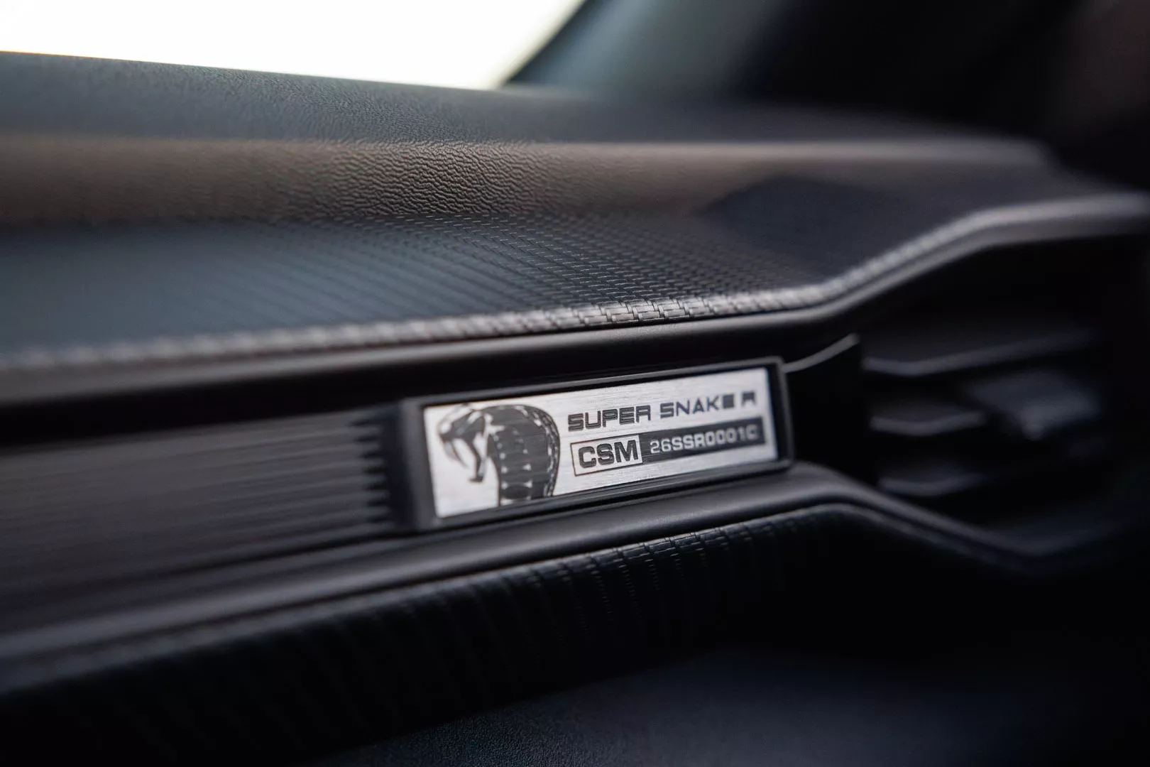 في الداخل، تمت إعادة تنجيد المقاعد بجلد فاخر يحمل شعار شيلبي مع لمسات Alcantara، كما حصلت النسخ اليدوية على مقبض تبديل تروس مخصص. وتوجد لوحة معدنية برقم تسلسلي على لوحة القيادة، مع دواسات مضيئة وسجاد أرضيات مطرز.