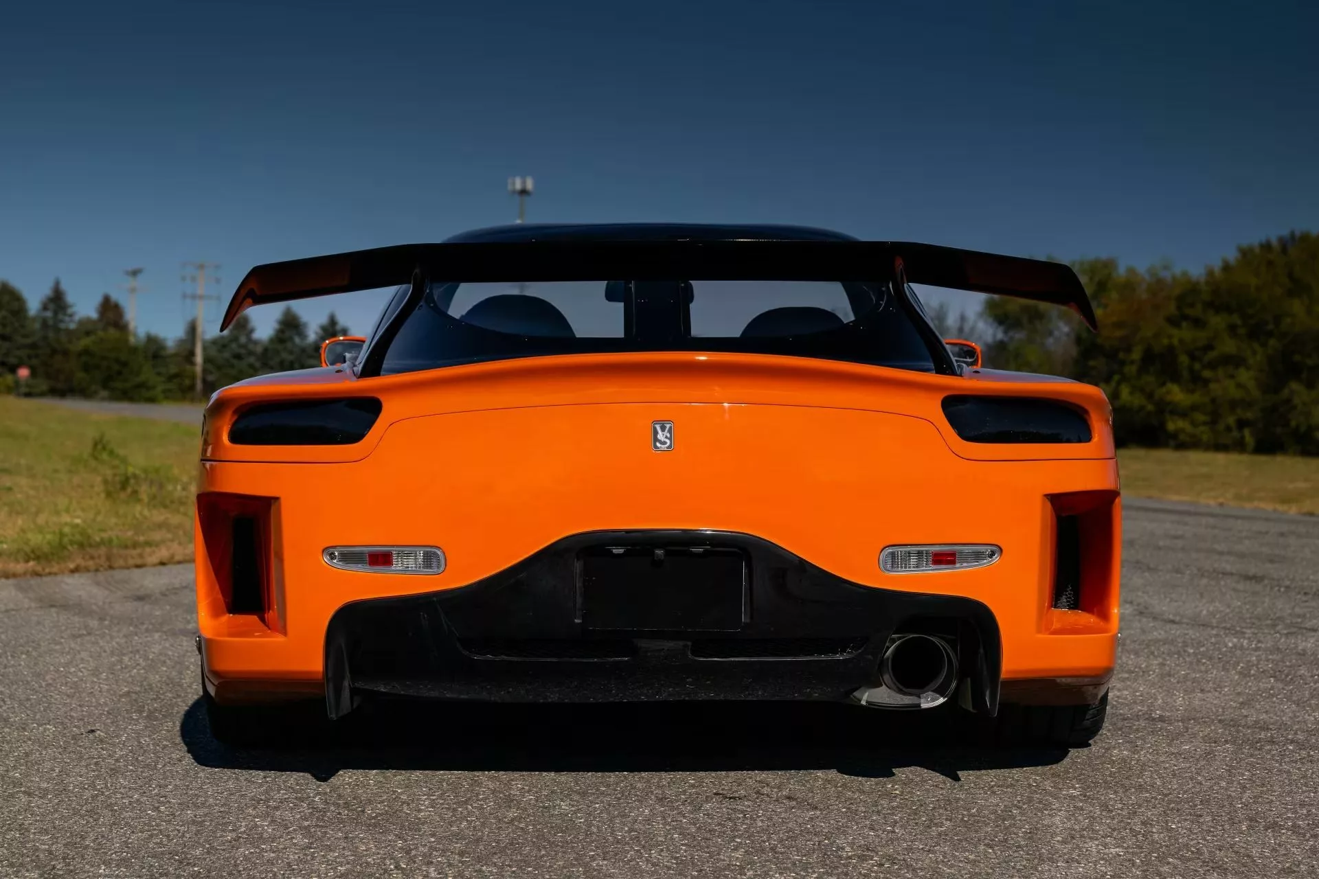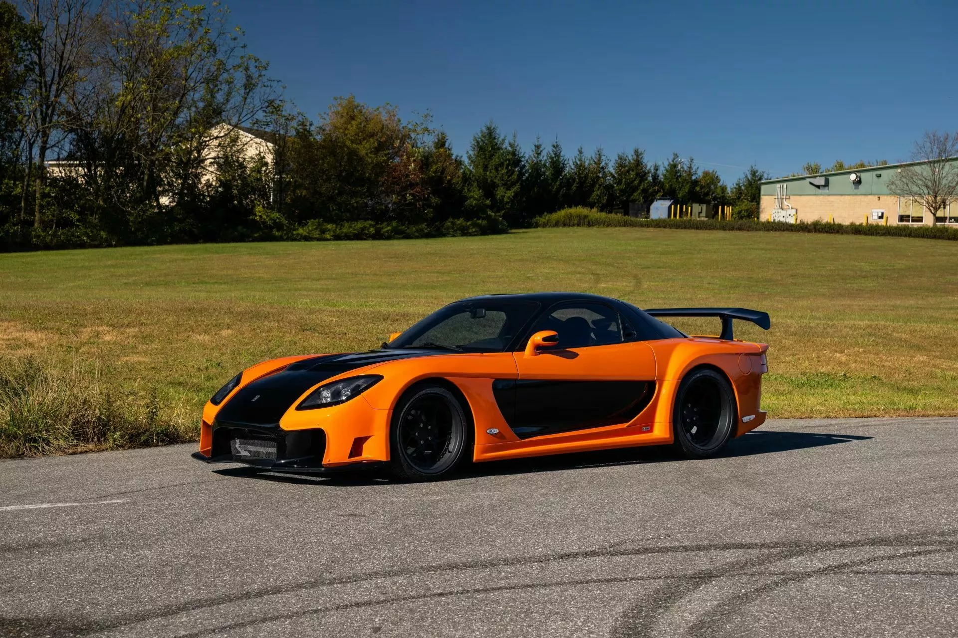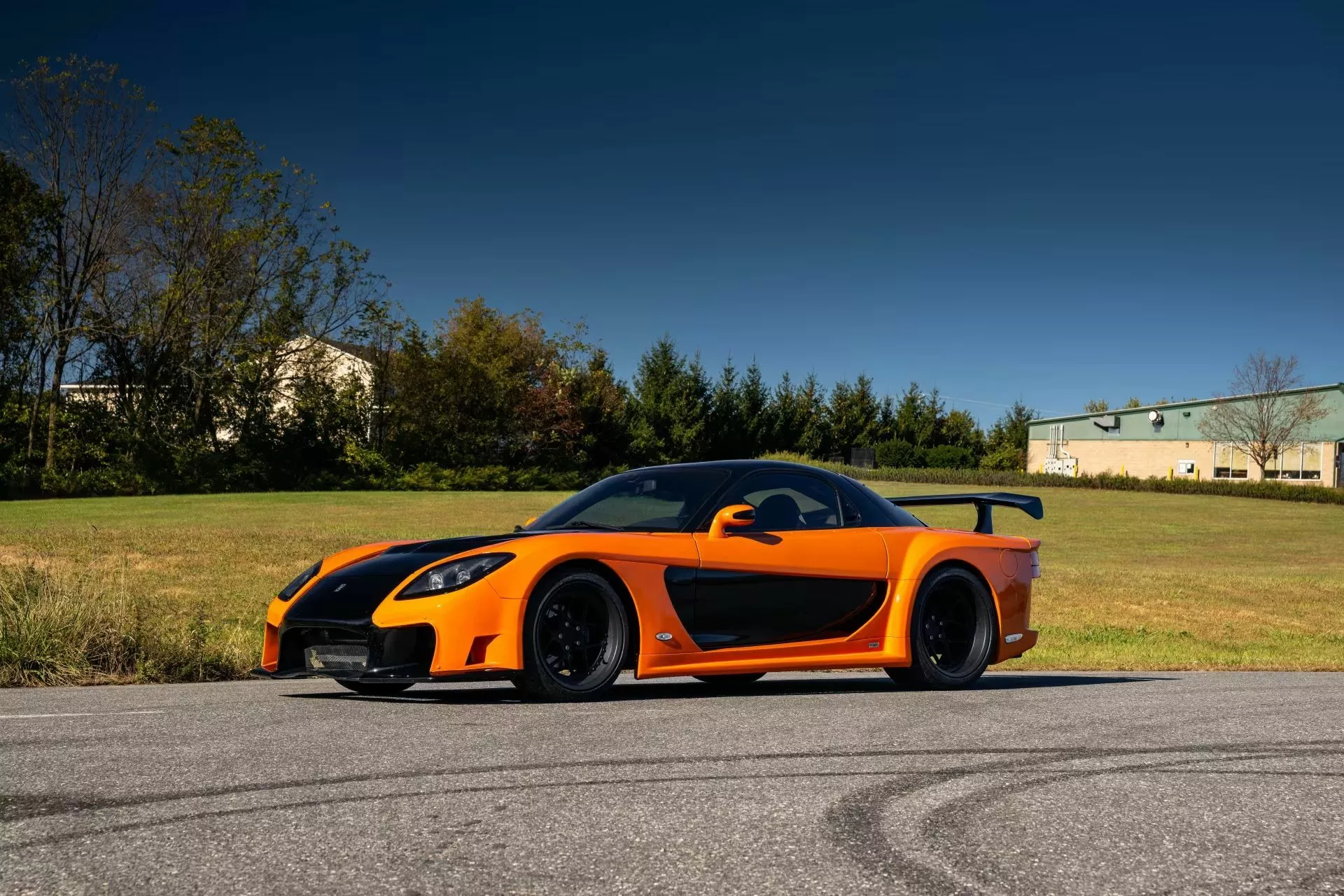 هذه النسخة مزودة بهيكل VeilSide Fortune الأصلي الذي يمنح RX-7 مظهراً قريباً من السيارات الأوروبية الخارقة. الطلاء البرتقالي والأسود يعيد أجواء الفيلم بدقة سينمائية، فيما تعتمد السيارة على نظام قيادة يسار لتكون أكثر ملاءمة للطرق الأمريكية.