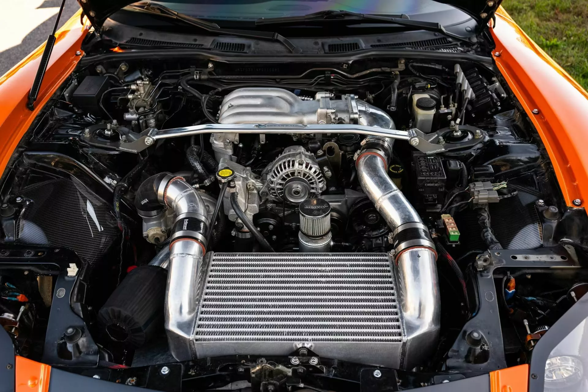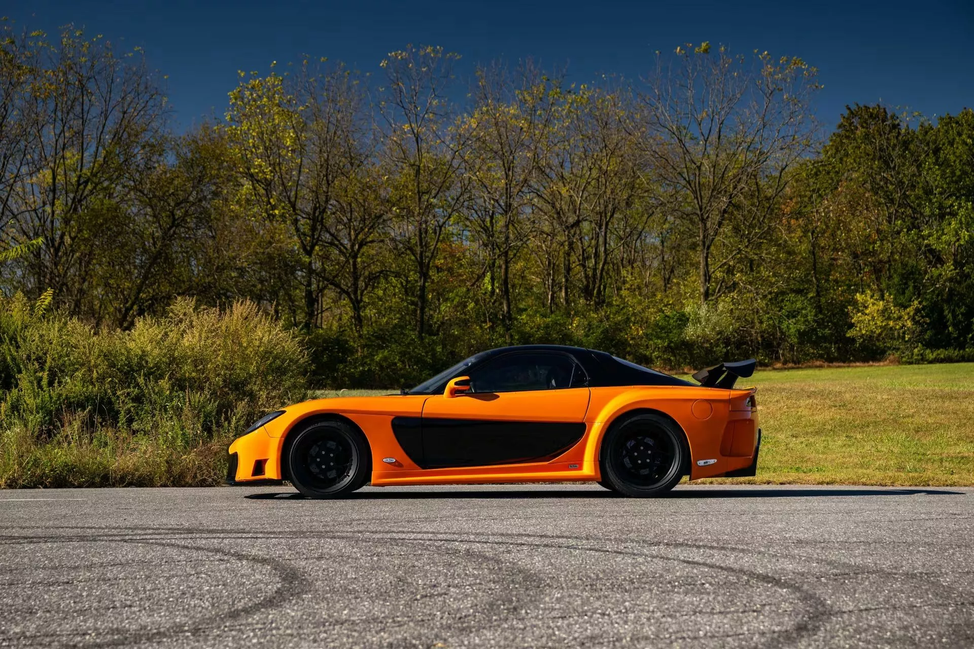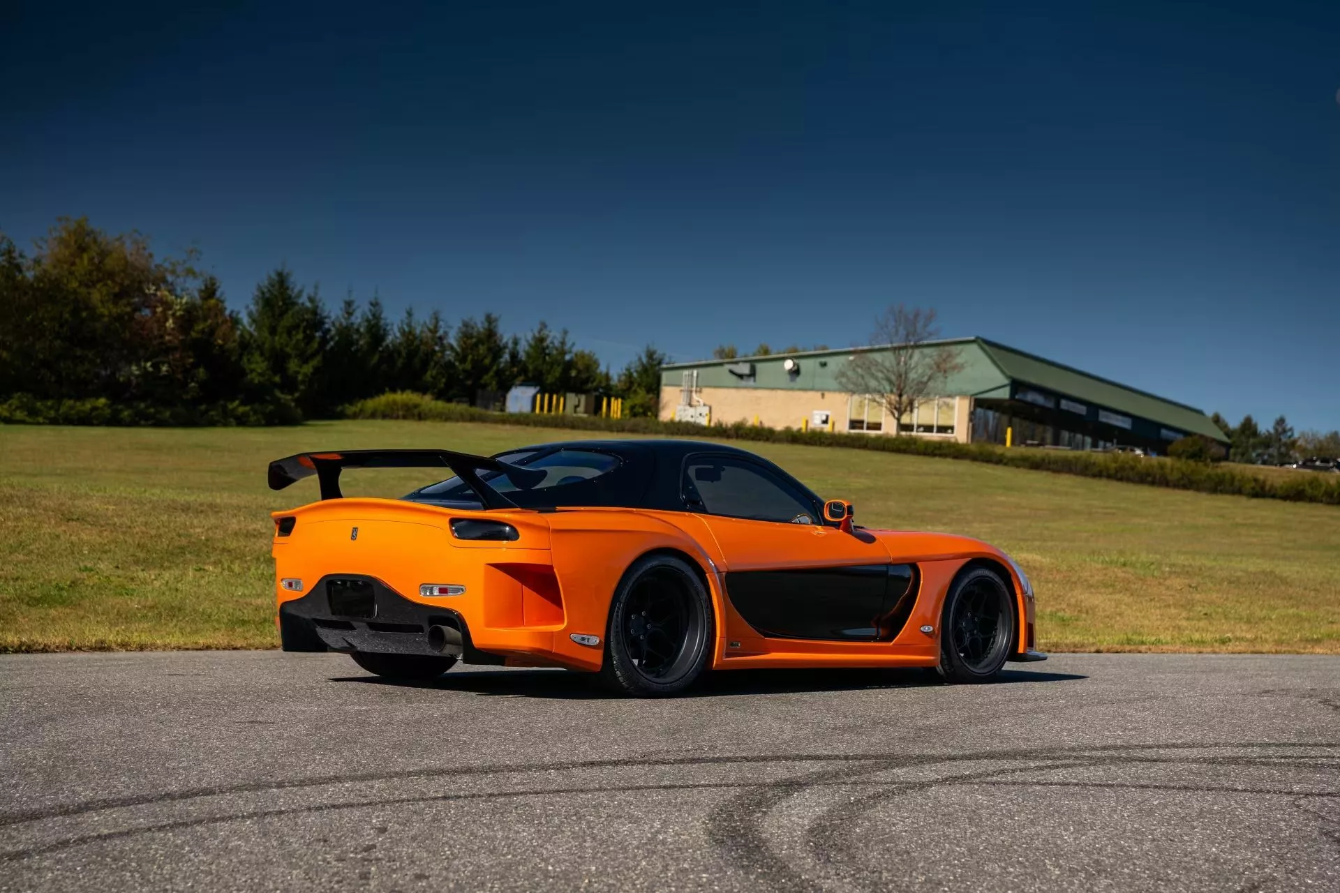 هذه النسخة مزودة بهيكل VeilSide Fortune الأصلي الذي يمنح RX-7 مظهراً قريباً من السيارات الأوروبية الخارقة. الطلاء البرتقالي والأسود يعيد أجواء الفيلم بدقة سينمائية، فيما تعتمد السيارة على نظام قيادة يسار لتكون أكثر ملاءمة للطرق الأمريكية.