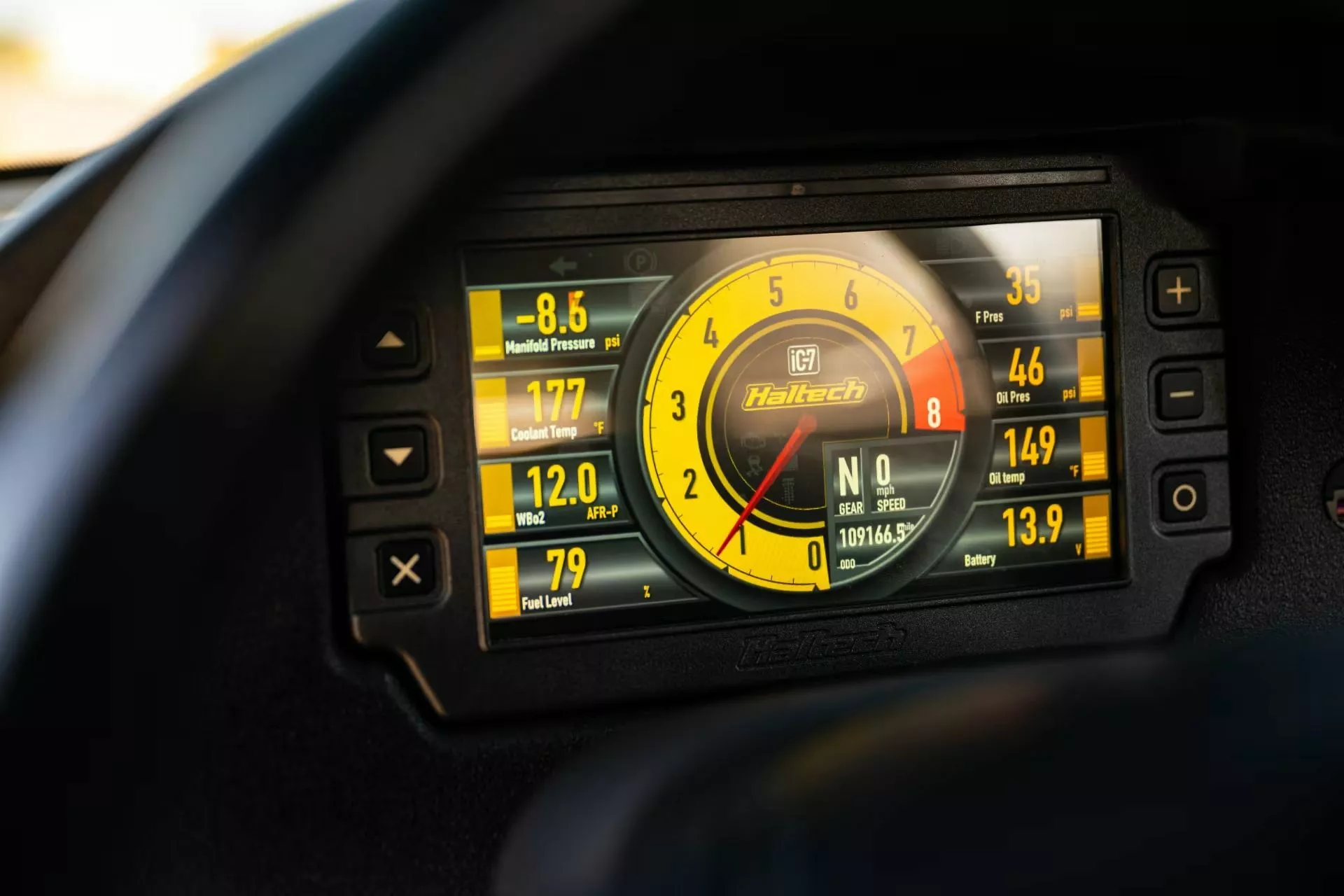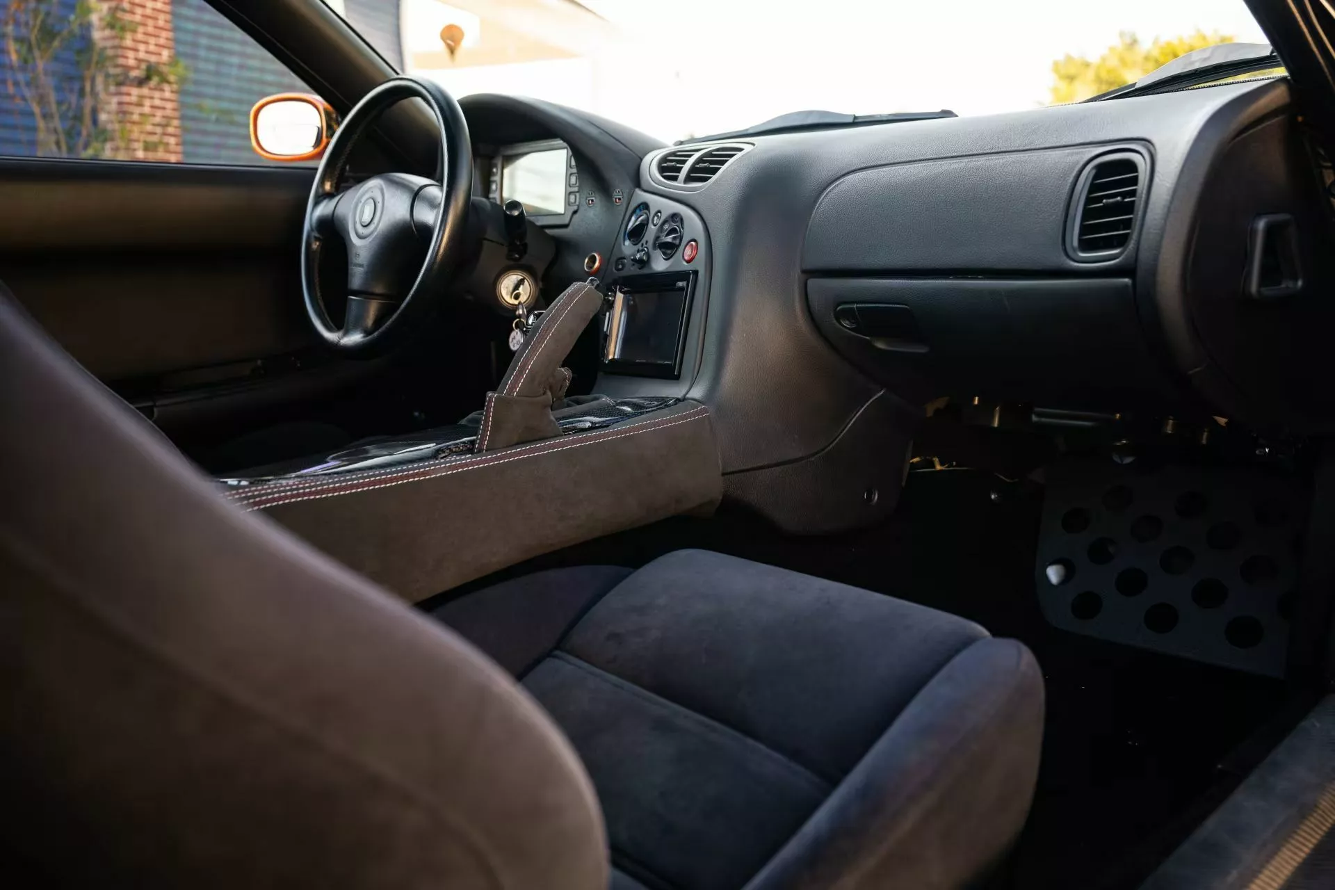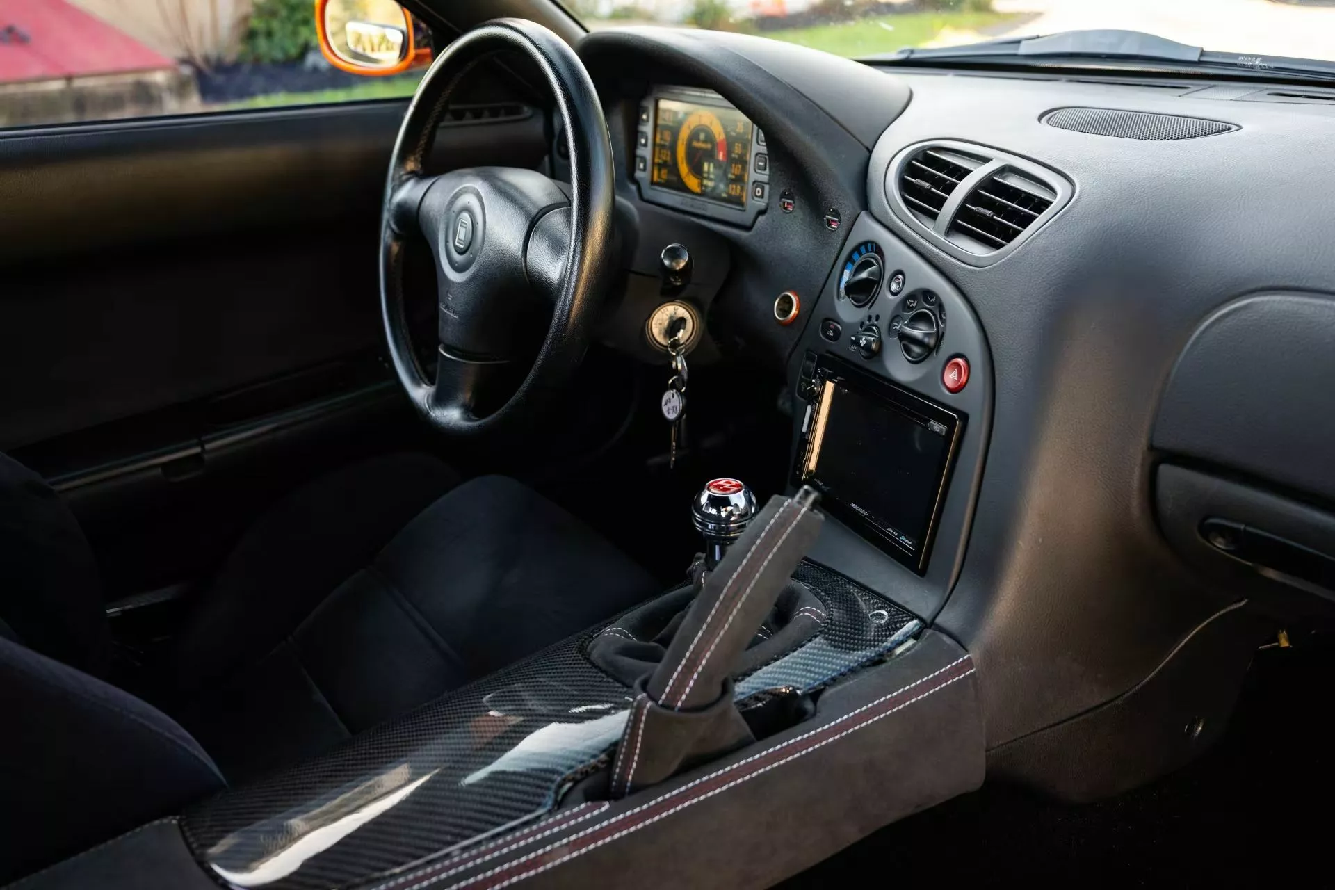 في المقصورة، تم تركيب شاشة رقمية من Haltech، ونظام معلومات وترفيه جديد، وتشطيبات من ألياف الكربون على الكونسول، مع مقبض تبديل جديد وسماعات حديثة — لتستمتع بموسيقى Tokyo Drift أثناء القيادة!