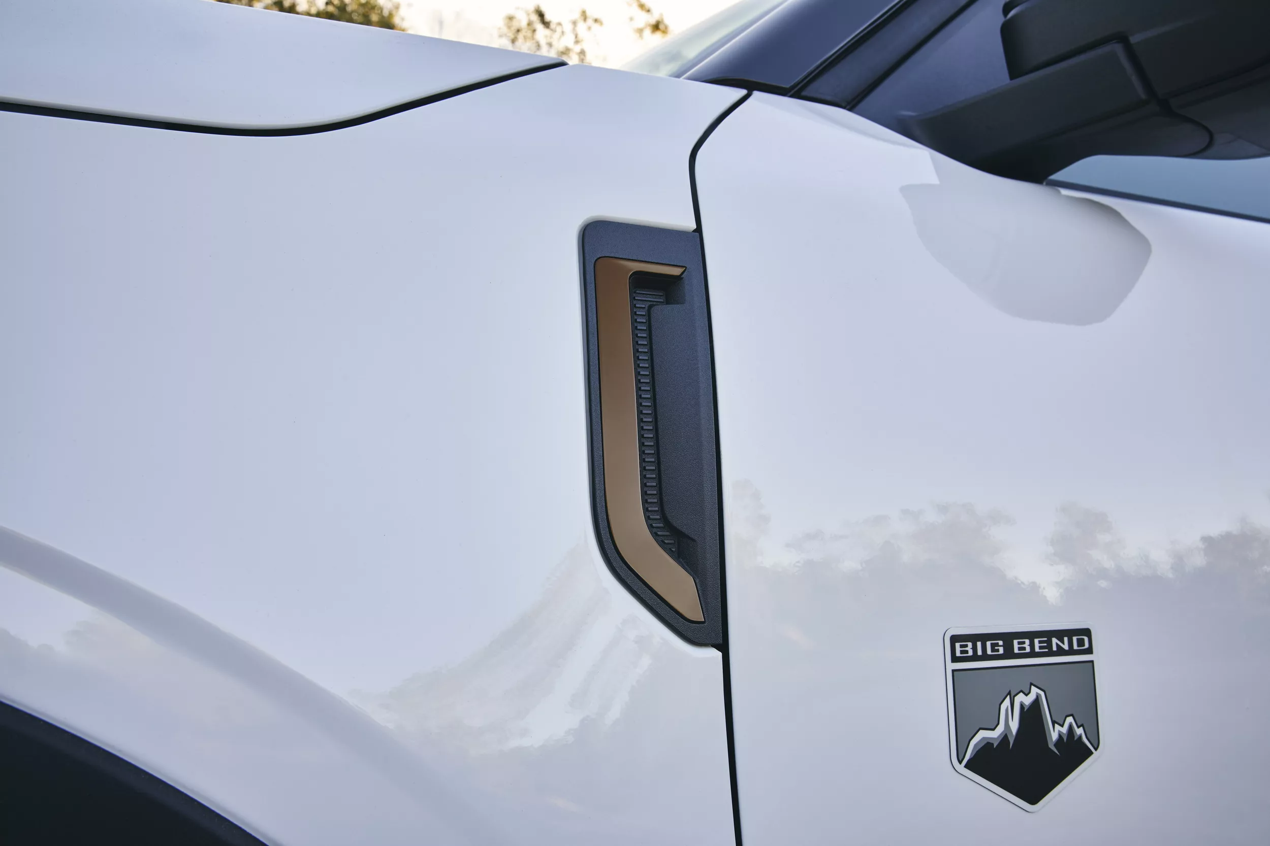 تُقدَّم Bronze Appearance Package على فئتي Big Bend و Badlands، وتتميز بعجلات معدنية قياس 17 بوصة مطلية بلون Sinister Bronze، يمكن تزويدها بإطارات مخصصة للطرق الوعرة. كما يظهر اللون البرونزي على شعار Bronco الأمامي والخلفي، مع خطوط سوداء فاخرة من Ebony Black تضيف طابعاً أكثر جرأة وأناقة.