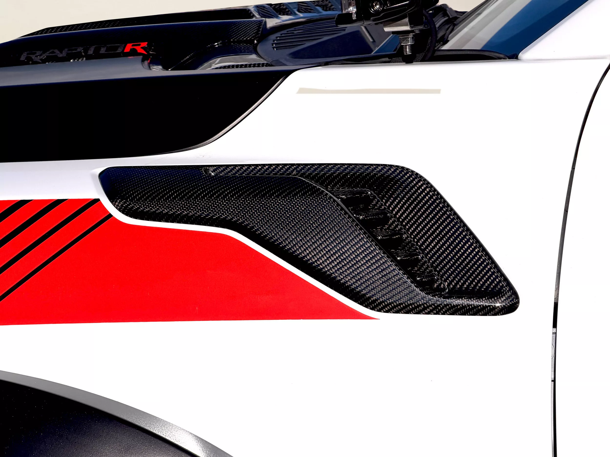 من الخارج، تميزت الشاحنة بتفاصيل تصميمية مستوحاة من سيارات السباق، تشمل غطاء محرك أسود بخطوط متباينة، ورسومات جانبية جريئة تحمل هوية رابتور، مع عجلات Method سوداء تمنحها مظهراً صلباً على الطرق الوعرة.