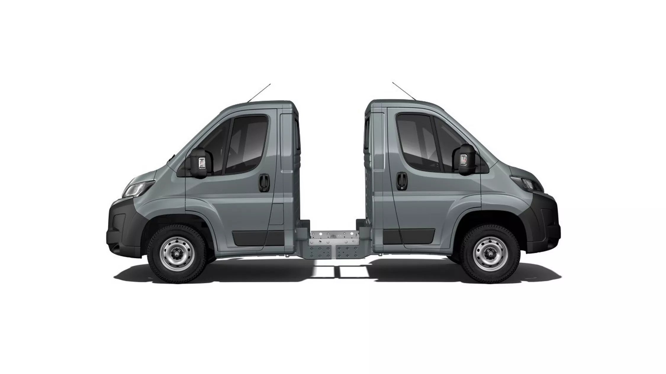 بعد التسليم، يتم فصل الكابينتين ليُعاد تركيب كل واحدة على شاسيه AL-KO مع نظام تعليق خاص بقضبان الالتواء، مصمم لتحمل وزن أقصى 4.4 طن. هذه القاعدة المسطحة والمنخفضة مثالية لتحويل الفان إلى مركبات تخييم (كامبر فان) أو منازل متنقلة بمساحات داخلية واسعة.