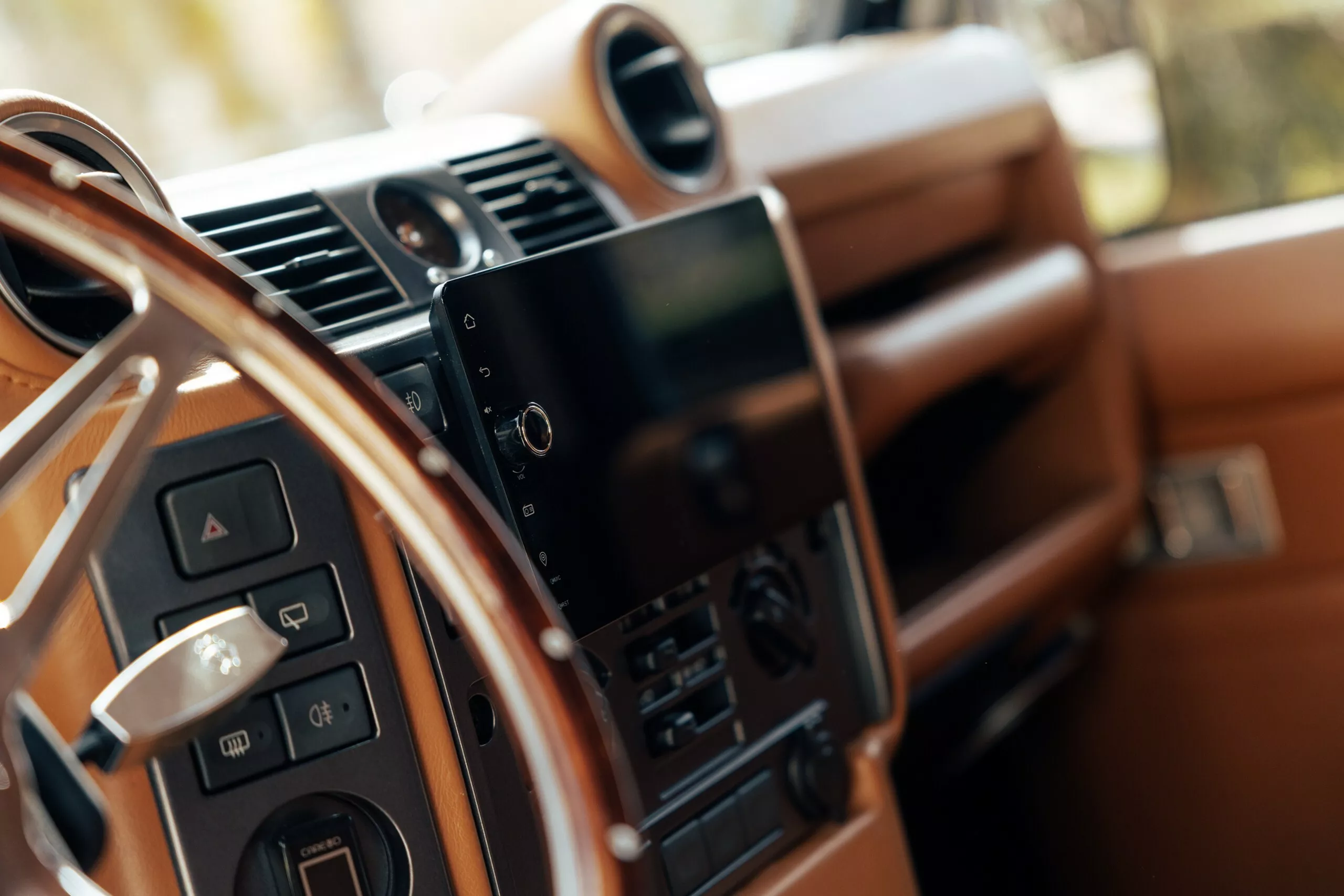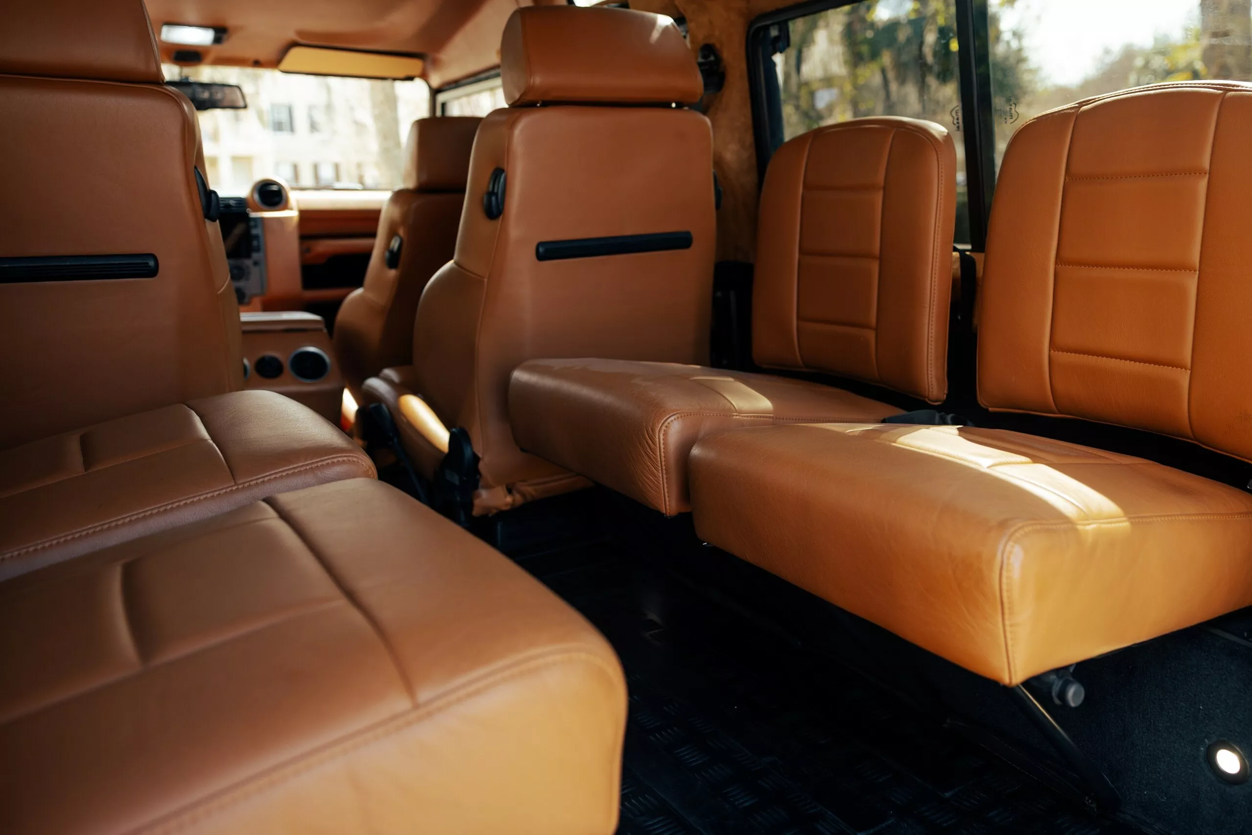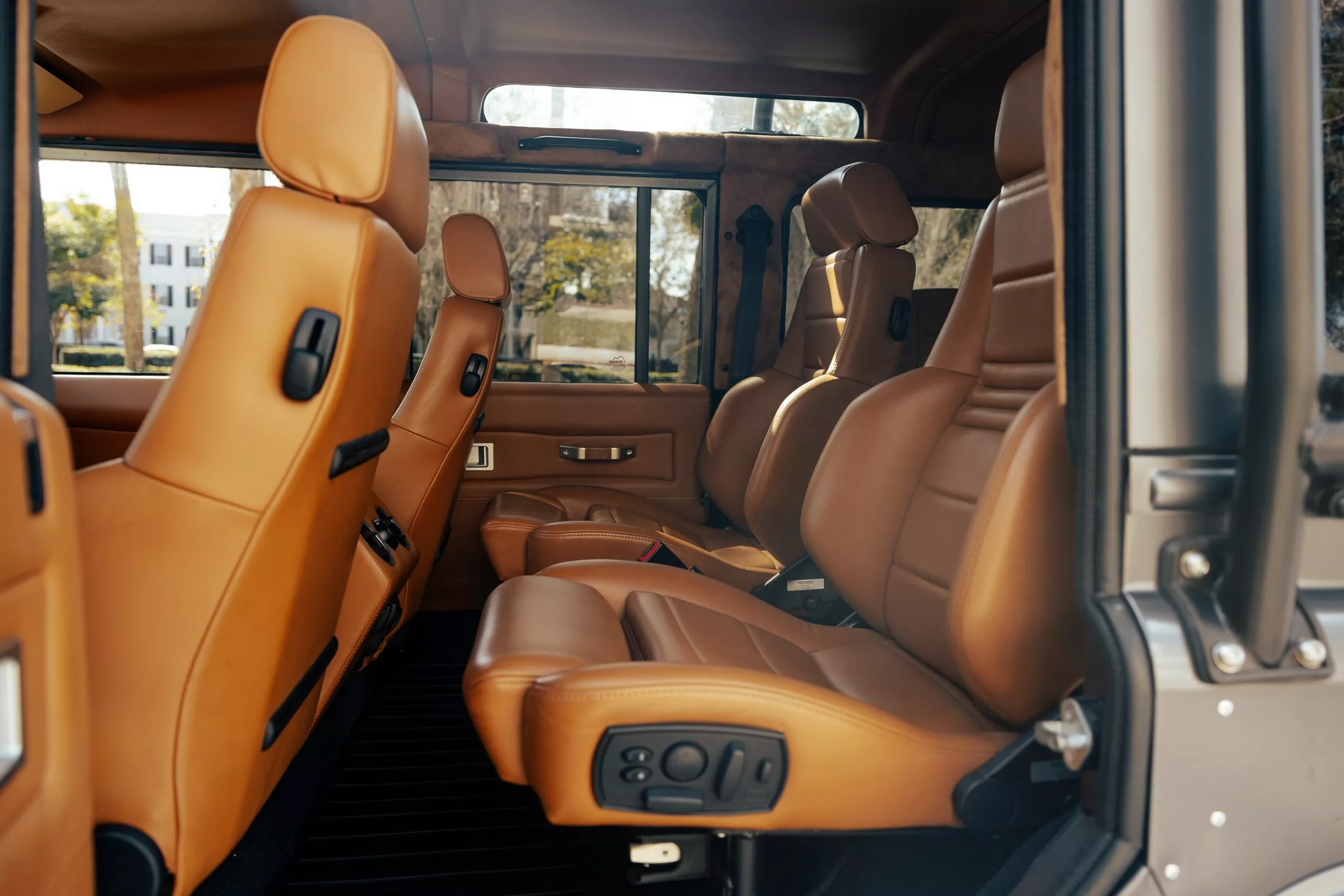 من الداخل، حصلت ديفندر الكهربائية على مقاعد رياضية Recaro Orthoped مكسوة بجلد Veluto Pelle، وعجلة قيادة Exmoor Evander، وعدادات مخصصة، ولمسات من الألومنيوم، بالإضافة إلى شاشة معلومات ترفيهية حديثة.