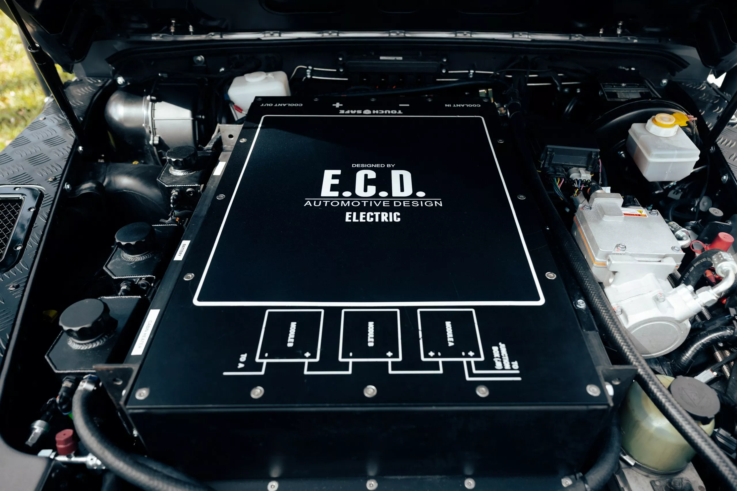 رغم التحول الكهربائي، حافظت السيارة على هويتها الكلاسيكية بطلاء Bonatti Gray مع لمسات Shadow Black، وإضافة قفص حماية خارجي سداسي النقاط، وصادم أمامي جديد مزود بونش من Warn. كما تم تركيب مصابيح LED أمامية على السقف، وصادم خلفي فولاذي، وعجلة احتياطية جديدة.