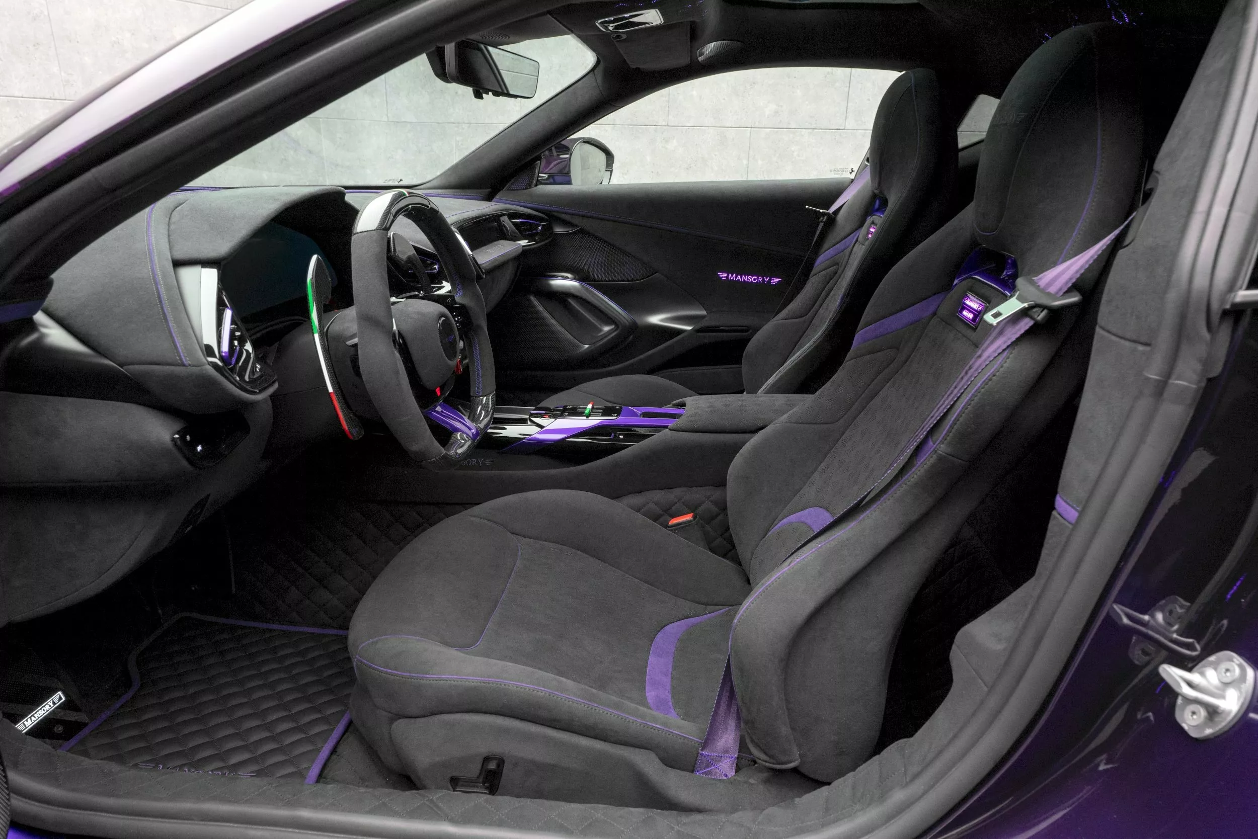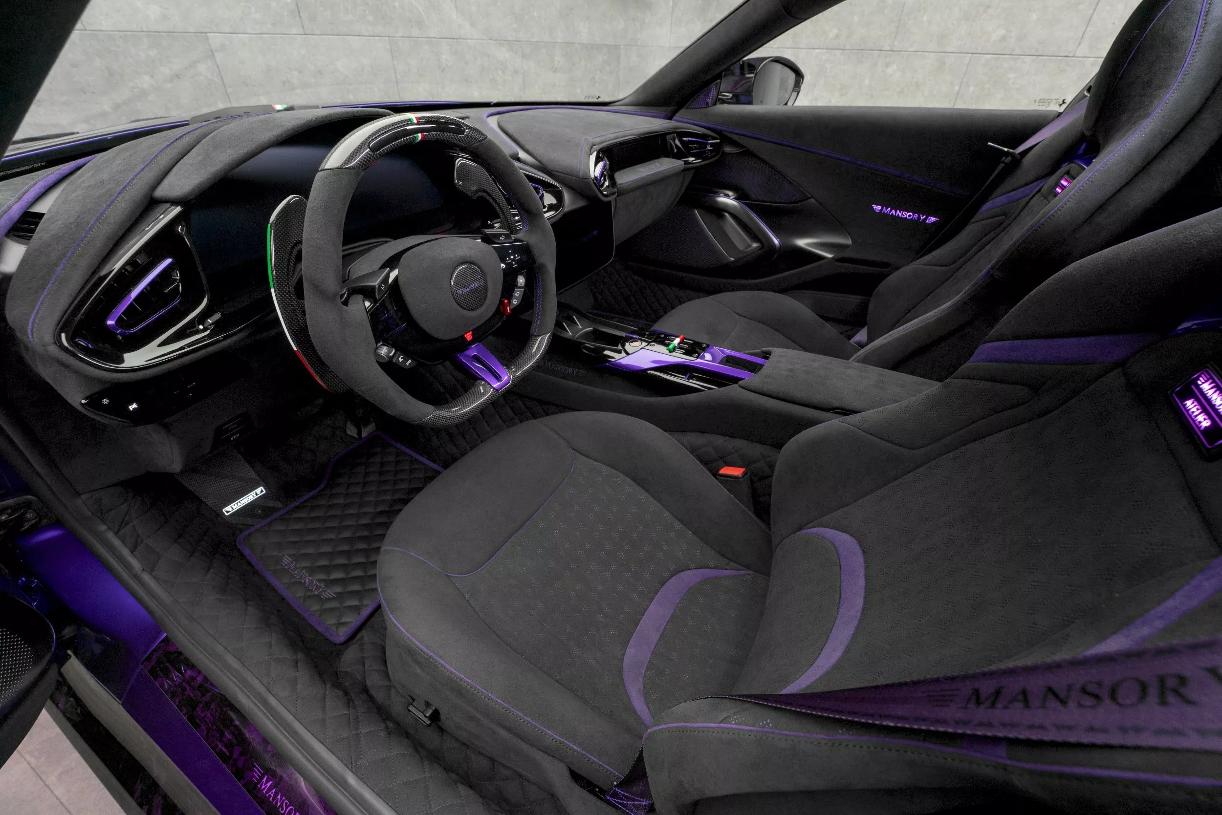 جهزت مانسوري النسخة المعدلة بجنوط خفيفة الوزن بقياس 21 إنشًا في الأمام و22 إنشًا في الخلف، مع إمكانية تخصيص الألوان حسب الطلب. أما المقصورة، فجاءت مكسوة بجلد Alcantara الرمادي مع إضاءة محيطية ولمسات من ألياف الكربون ودواسات ألمنيوم وسجاد فاخر يحمل توقيع Mansory. كما يمكن للعملاء اختيار تشطيبات جلدية مخصصة بأي لون.