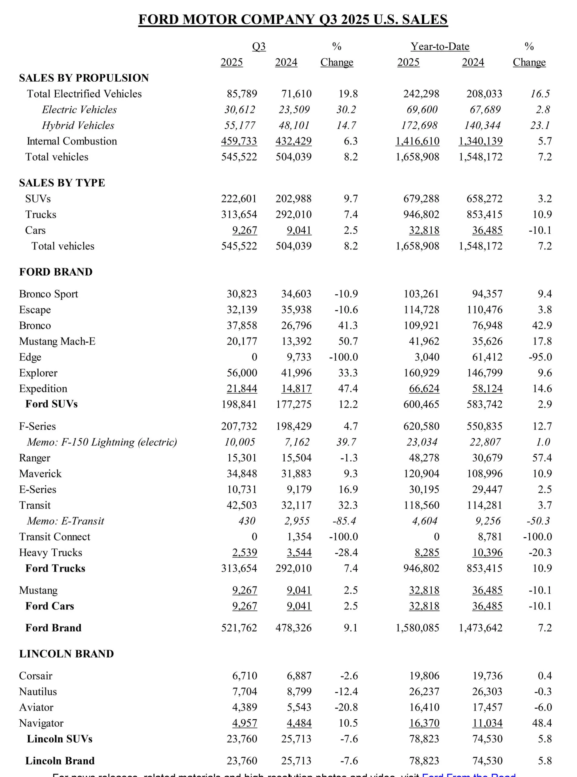 شهدت فورد أفضل ربع سنوي لها على الإطلاق في مبيعات السيارات الكهربائية والهجينة، حيث حققت الشركة طفرة كبيرة في الربع الثالث من عام 2025.
