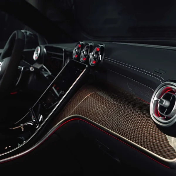 رغم التحديثات التقنية، حافظت مرسيدس-AMG على الهوية البصرية المعروفة: شبك أمامي عمودي، فتحات تهوية أكبر، ومظهر أكثر عدوانية دون مبالغة. السيارة لا تحاول تغيير هويتها، بل تطويرها بلغة أكثر حداثة.