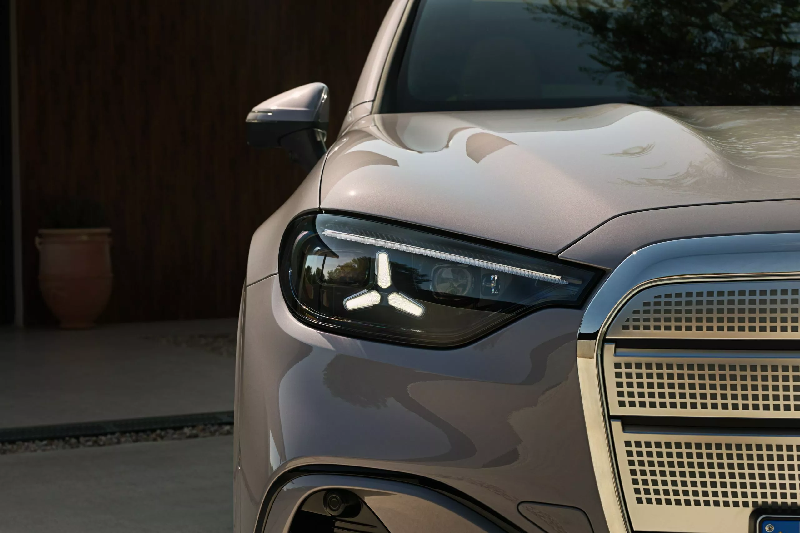 أعادت مرسيدس تعريف شبكها الأمامي الضخم بواجهة مضيئة تضم 942 نقطة LED، ما يمنح السيارة حضورًا لافتًا على الطريق.
