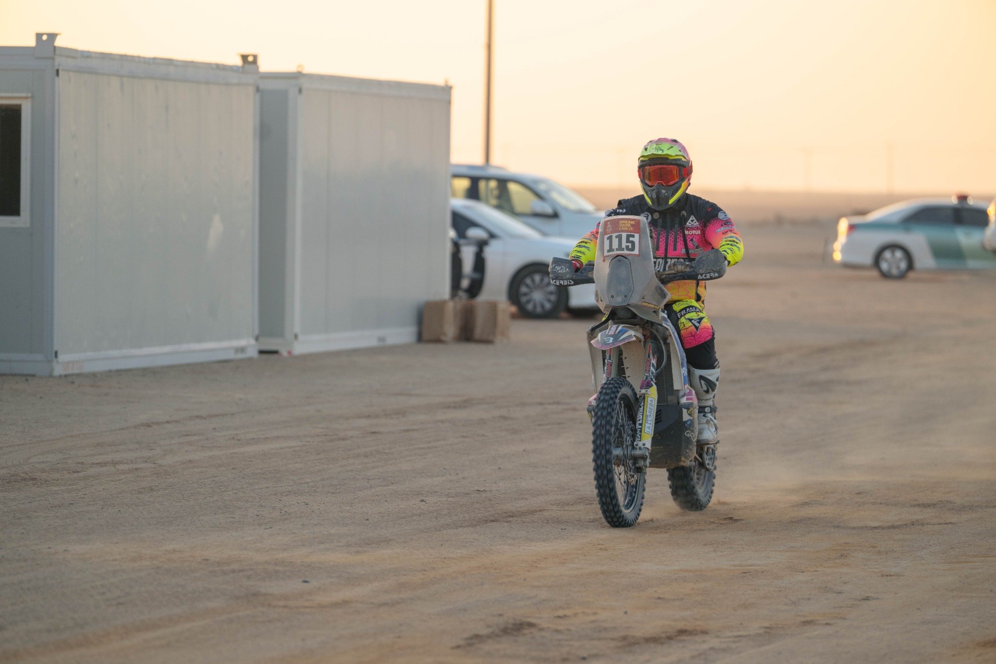 في فئة الدراجات النارية، واصل الإسباني توشا شارينا، دراج فريق «مونستر إنرجي هوندا»، تألقه بعد إنهائه المرحلة في المركز الأول بزمن بلغ 3 ساعات و45 دقيقة و42 ثانية. وجاء الأسترالي دانيال ساندرز، دراج فريق «ريد بُل كيه تي إم فاكتوري ريسينغ»، ثانيًا بفارق 4 دقائق و35 ثانية، فيما حل الجنوب أفريقي مايكل دوكيرتي، دراج فريق «باس وورلد كيه تي إم»، ثالثًا بفارق 4 دقائق و50 ثانية.