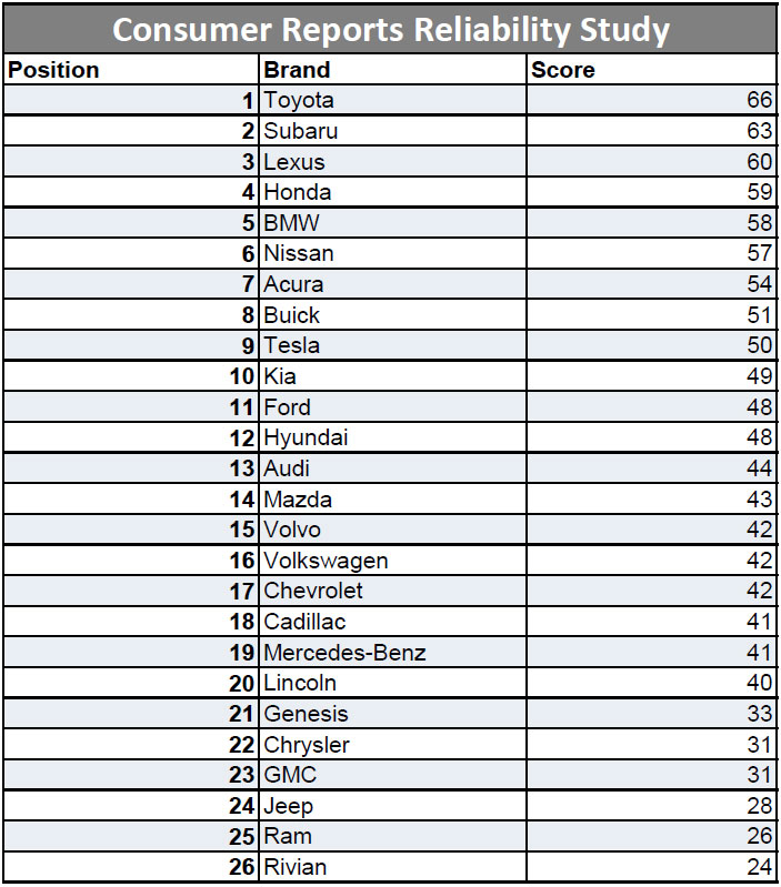 علامات مثل Toyota وLexus حافظت على مواقع متقدمة، بفضل سجلها المستقر في الاعتمادية وجودة التصنيع.