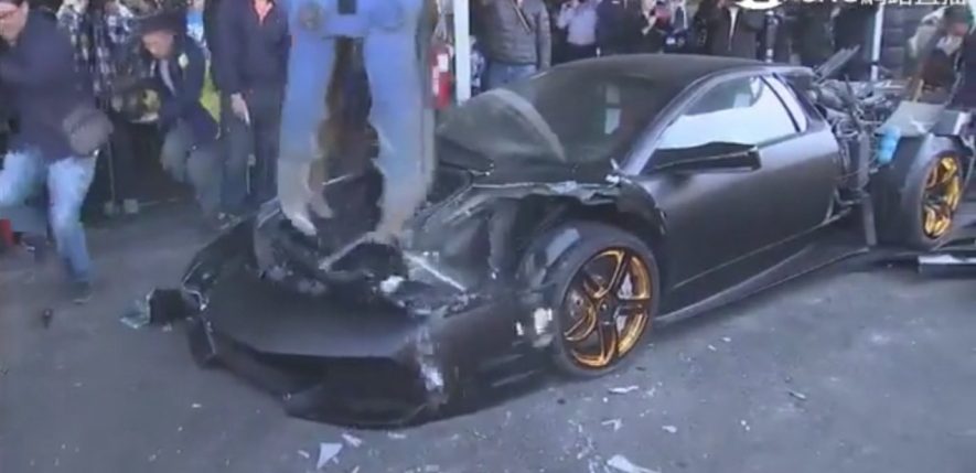 السلطات التايوانية تقوم بتدمير علني لسيارة لامبورغيني.. لماذا!