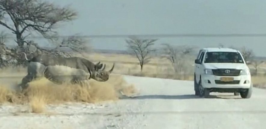 بالفيديو: وحيد القرن يهاجم سيارة.. فماذا حصل؟