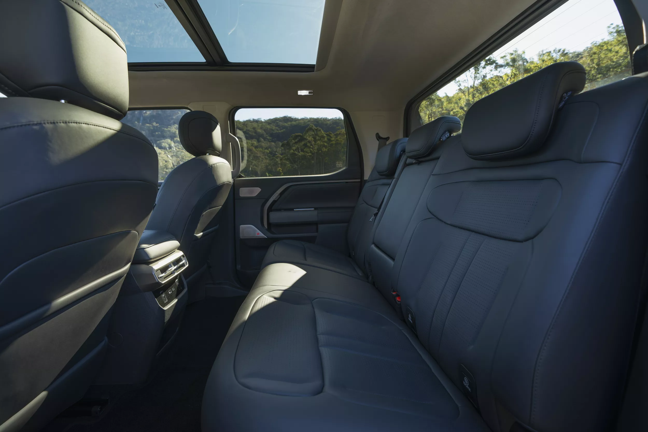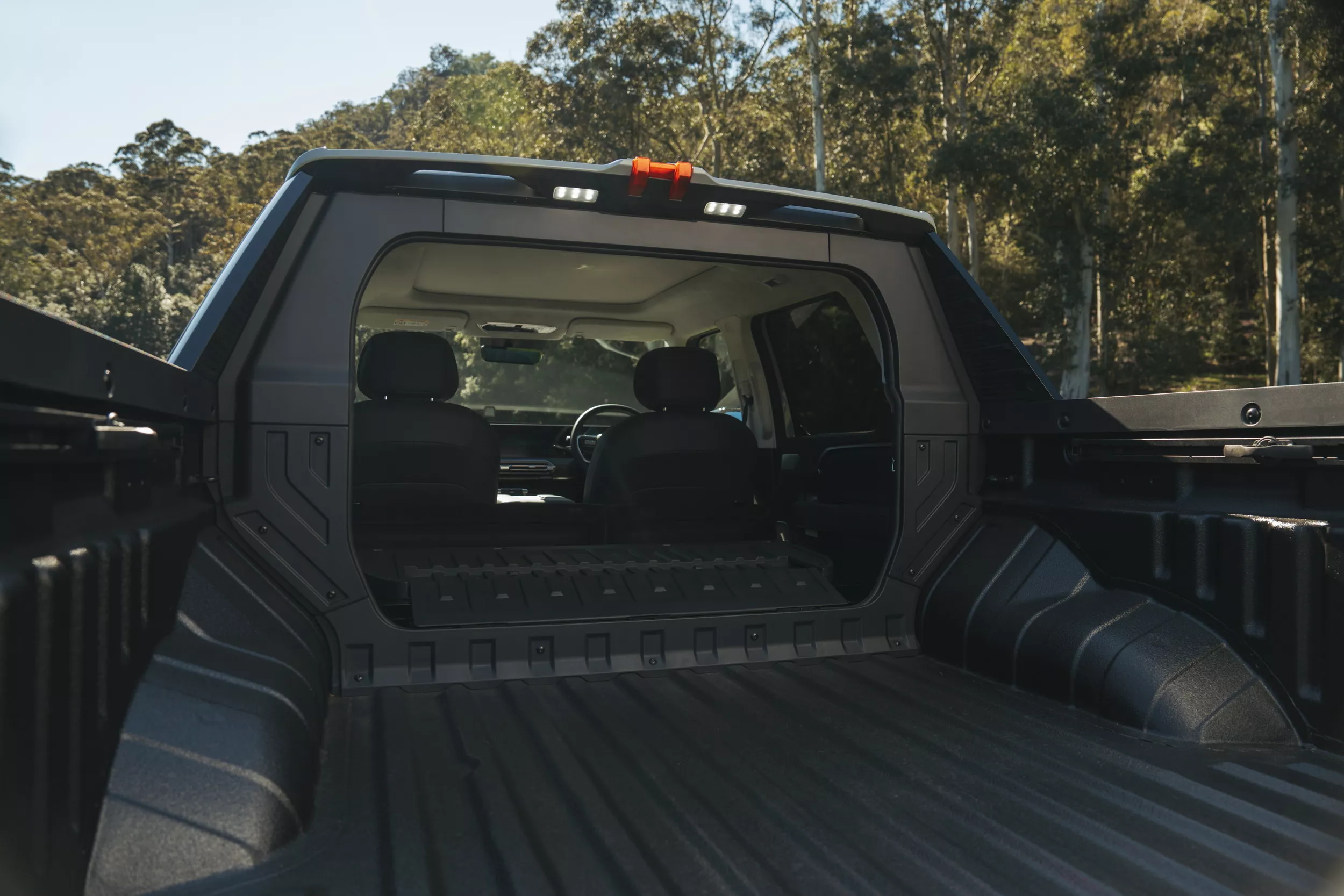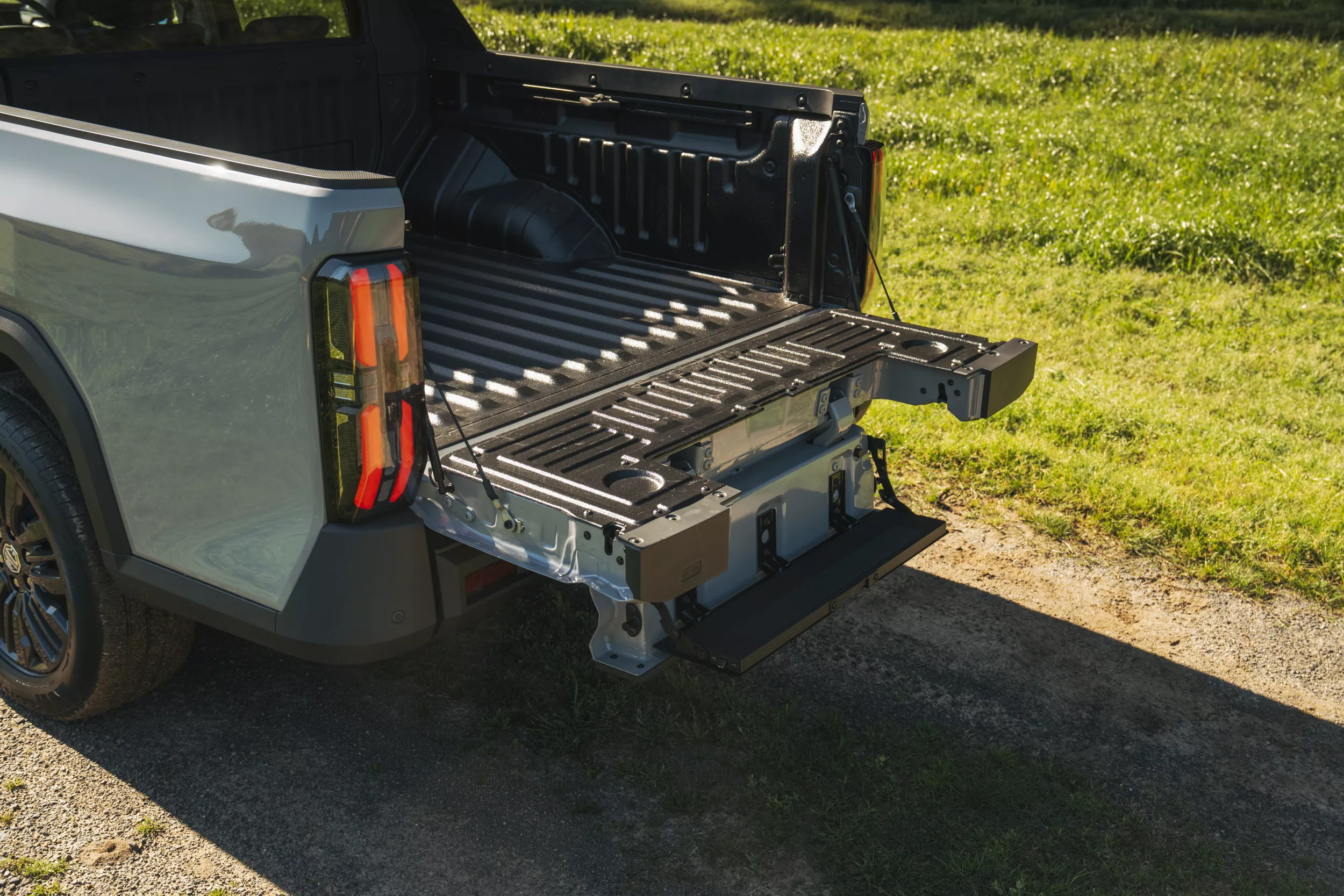 • باب خلفي كهربائي ذكي مزوّد بدرج مخفي لتسهيل الصعود للحوض الخلفي، ويمكن استخدامه كمقعد مع حاملات للأكواب.