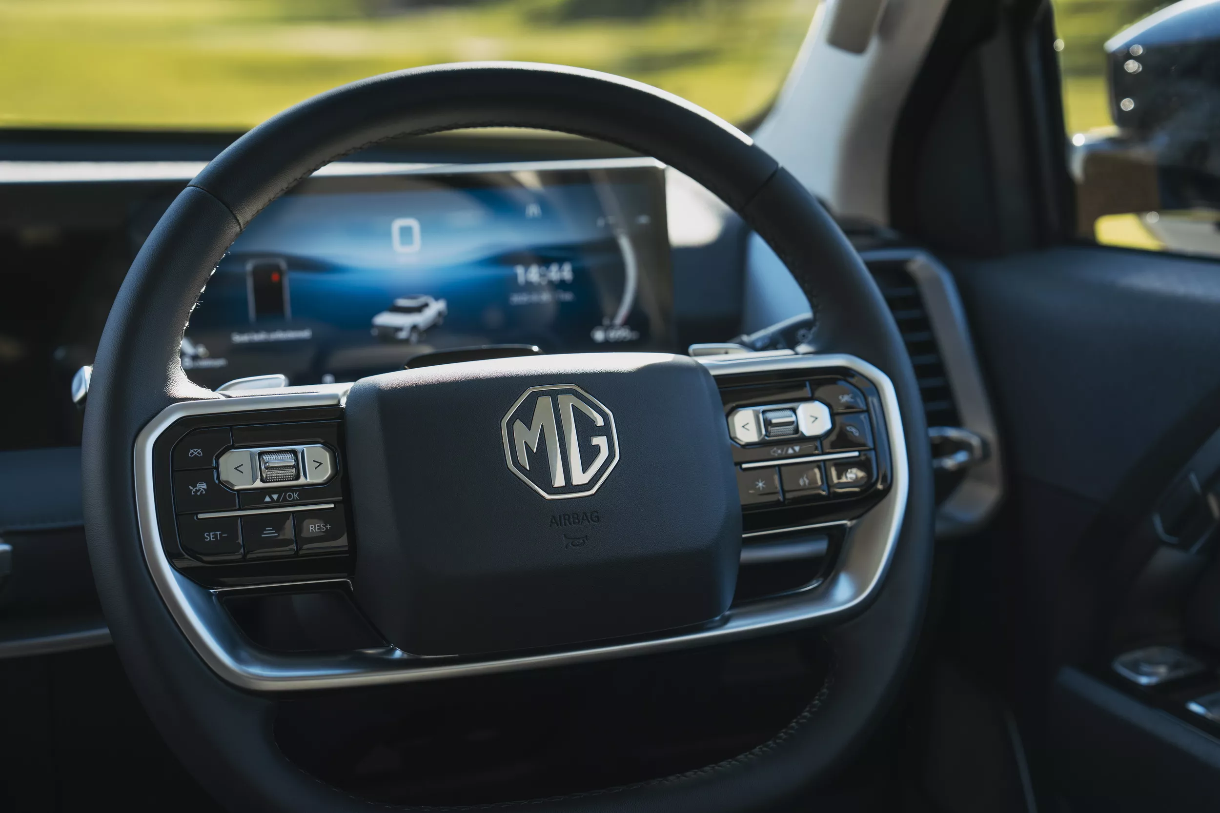 • مقدمة بشبك أمامي ضخم مع لمسات كروم وشعار MG بارز.