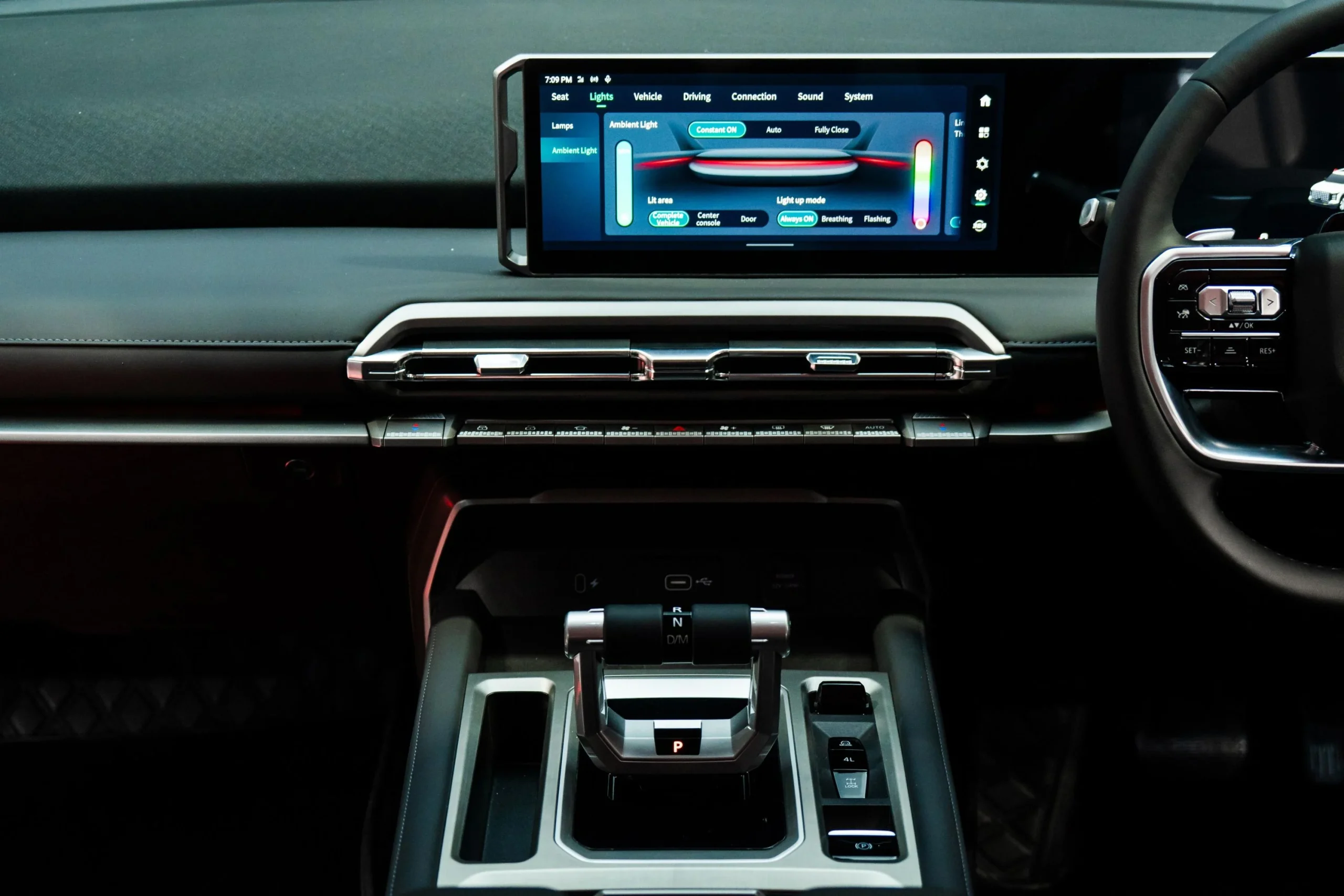 وعند تفعيل النطاق المنخفض، تتوسع خيارات القيادة لتشمل وضعيات إضافية مثل Rock وMud وWade وغيرها، ما يمنح MG U9 قدرة تنافسية واضحة أمام بيك أب شهيرة في الفئة نفسها. وتأتي الفئتان الأولى والمتوسطة مع قفل تفاضلي خلفي، بينما تضيف الفئة الأعلى قفلاً تفاضلياً أمامياً لتعزيز القدرة على اجتياز العقبات.