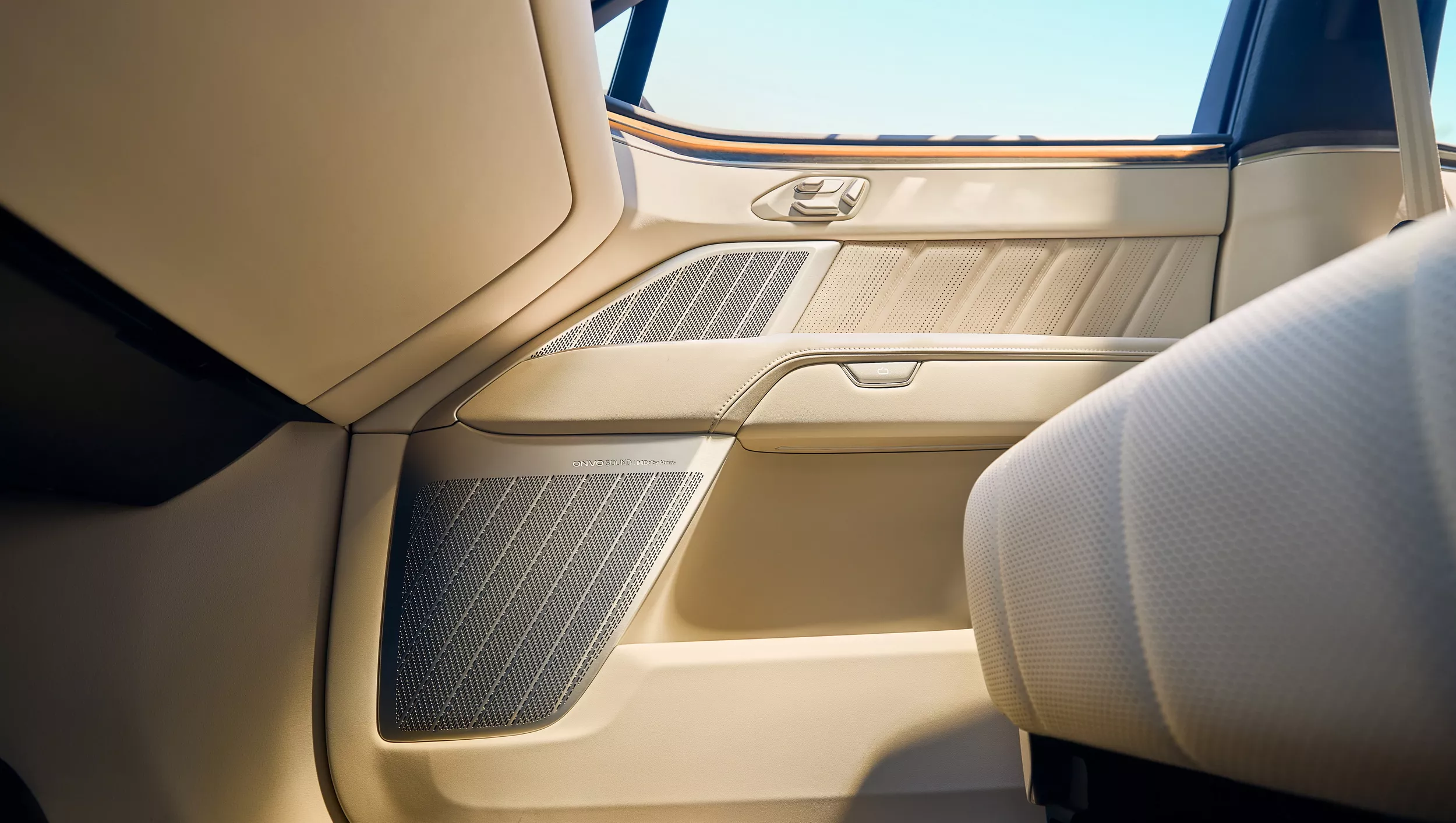 • نظام صوتي فاخر بـ 23 مكبر صوت وثلاجة صغيرة مدمجة بسعة 8.8 لتر.