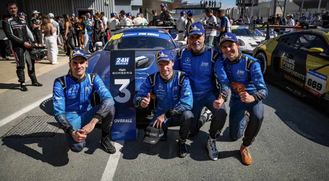وبينما احتُسمت الصدارة لصالح Team WRT وBMW، اشتعلت المنافسة خلف المقدمة، حيث نجح فريق Winward Racing في خطف المركز الثالث عبر سيارة Mercedes-AMG GT3 Evo رقم 16، ليحجز مكانه على منصة التتويج بعد سباق طويل اتسم بالضغط المستمر وتبدّل الظروف بين النهار والليل.