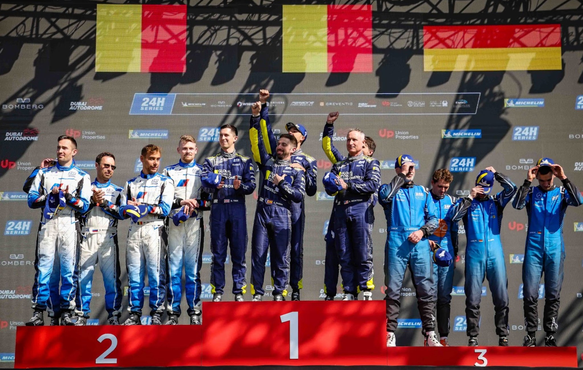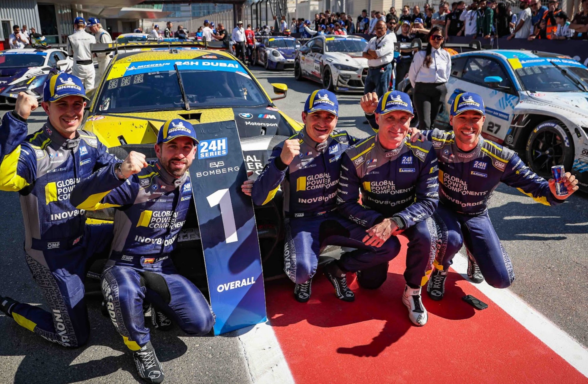 تمكن فريق Team WRT من حسم الفوز العام للسباق عبر سيارة BMW M4 GT3 Evo رقم 669، بعد أداء ثابت وتنفيذ تكتيكي مثالي حافظ من خلاله الفريق على إيقاع قوي طوال السباق، قبل أن يحسم الصدارة عند خط النهاية ويؤكد تفوقه في واحدة من أكثر نسخ دبي 24 ساعة حسماً على مستوى المقدمة.