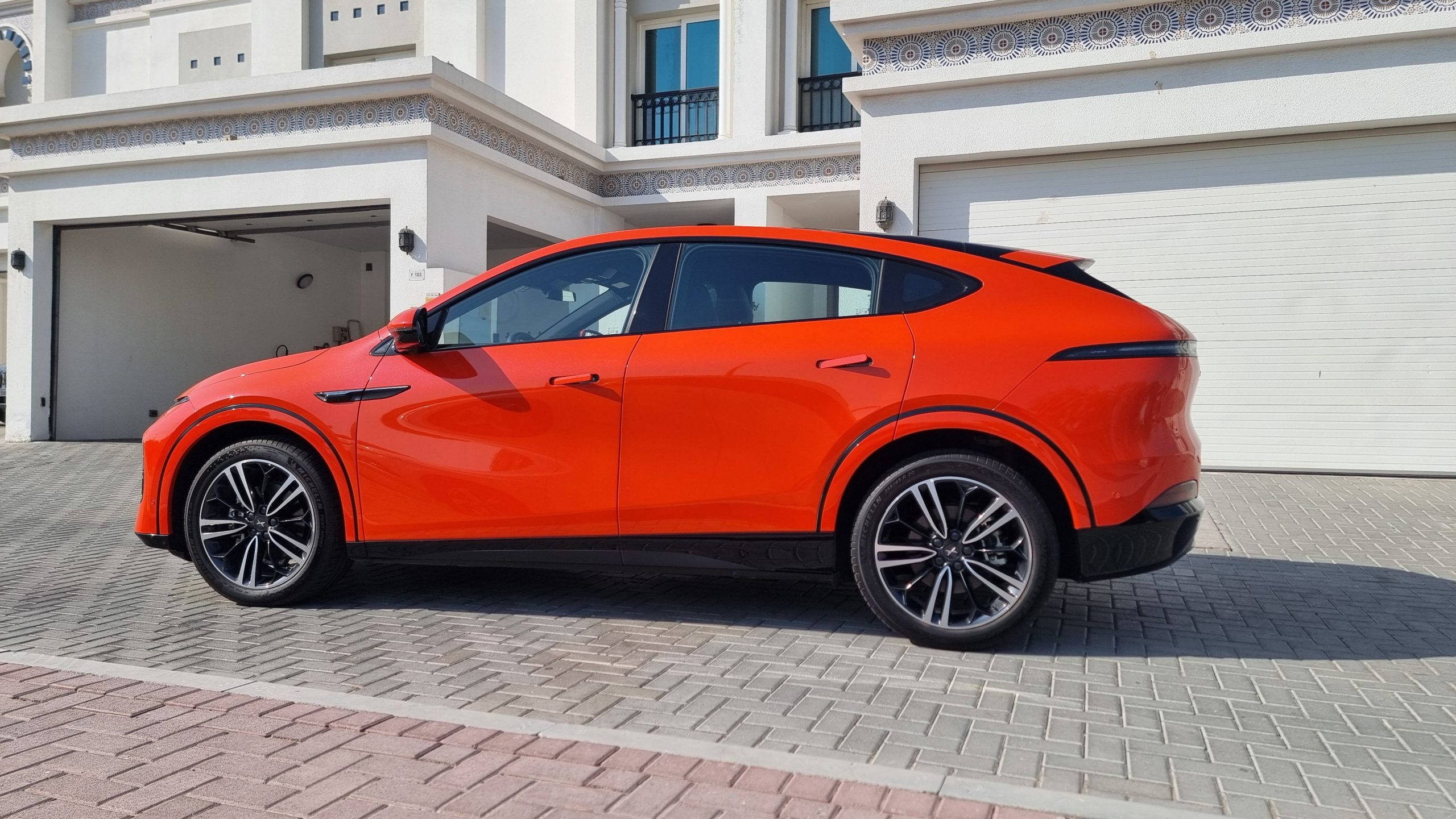 تتميز XPENG G6 بتصميمها الخارجي الديناميكي والجريء، مع خطوط رياضية انسيابية وسقف منحدر يمنحها مظهراً جذاباً وفريداً من نوعه. كل تفصيل في تصميمها مدروس بعناية لتعزيز الكفاءة الهوائية، حيث يبلغ معامل السحب 0.248 فقط. لا تفوتوا أبوابها الخالية من الإطار ومقابض الأبواب المخفية التي تضفي لمسة من الأناقة والتكنولوجيا المتقدمة، إضافة إلى الجنوط الأنيقة مقاس 20 بوصة بتصميمها الأسود والمصقول.